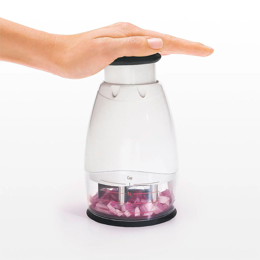 La Picadora grande SoftWorks OXO es una picadora eléctrica de lo más práctica, hecha para su uso diario. Con un funcionamiento de lo más simple: con solo presionar su tapa podrás picar, triturar o mezclar pequeñas cantidades de forma sencilla y rápida.