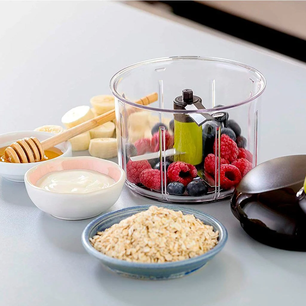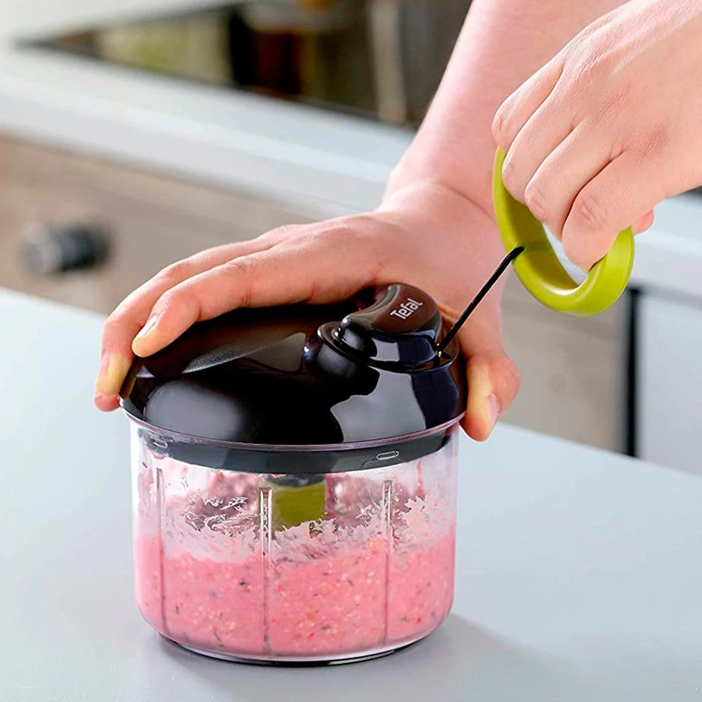 Con la Picadora manual de Tefal podrás cortar y triturar verduras, frutas, especias, frutos secos y todo tipo de ingredientes en un momento. Su mecanismo patentado es muy fácil de usar y su amplio recipiente es ideal para trocear los alimentos o preparar fácilmente salsas y aliños a tu gusto.