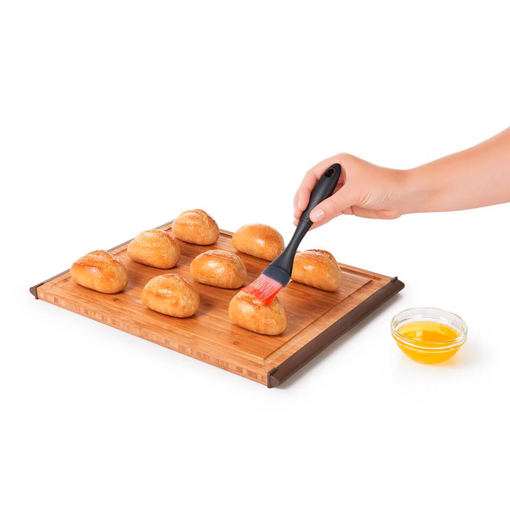 El Pincel de silicona SoftWorks de OXO es una herramienta versátil y compacta, ideal tanto para repostería como para rociar salsas y aceites sobre carnes y pescados. Sus cerdas de silicona cuentan con círculos centrales que retienen el líquido, con lo que podrás rociar tus dulces, así como carnes y pescados de forma precisa y uniforme. Además, el cabezal inclinado evita que el pincel ensucie la encimera cuando no está en uso.