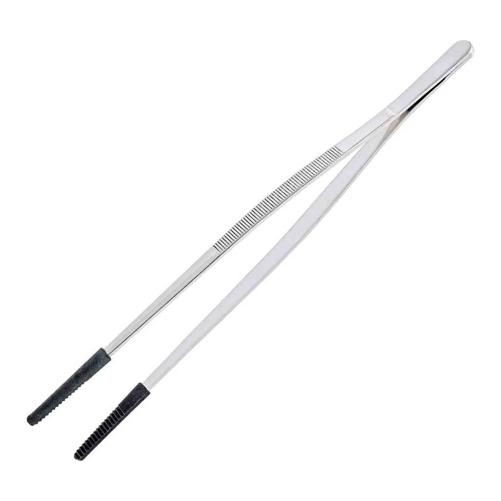 - Pinzas de acero inoxidable pulido con puntas de silicona. Longitud: 30 cm.