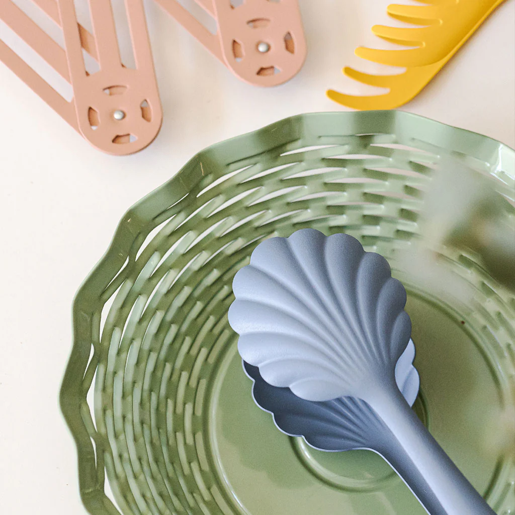 Fabricada en una sola pieza y esmaltadas, la tradicional pinza para pan, luce un renovado aspecto de la mano de Roger Orfevre. Su encantador diseño a modo de amplias conchas redondeadas, te ayudará a coger no solo magdalenas o panecillos. Es también ideal para emplatar la carne, las verduras, la pasta o la ensalada de acompañamiento.