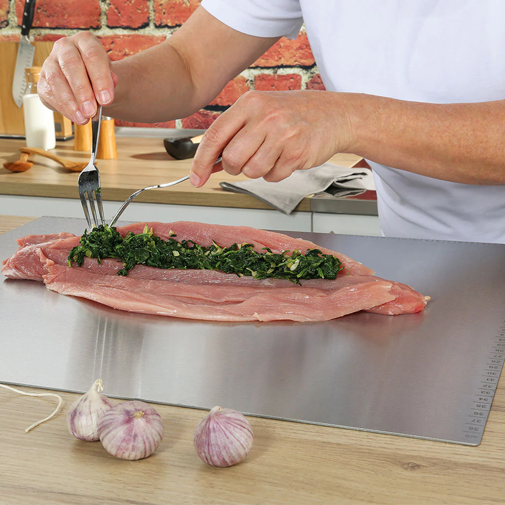 La plancha de acero es una solución ideal en sus dos formatos, ya que es una superficie perfecta para limpiar, cortar y filetear carnes y pescados. Al tratarse de una plancha de acero inoxidable no es porosa, por lo que no absorbe olores ni sabores, es totalmente higiénica, antibacteriana y fácil de limpiar.