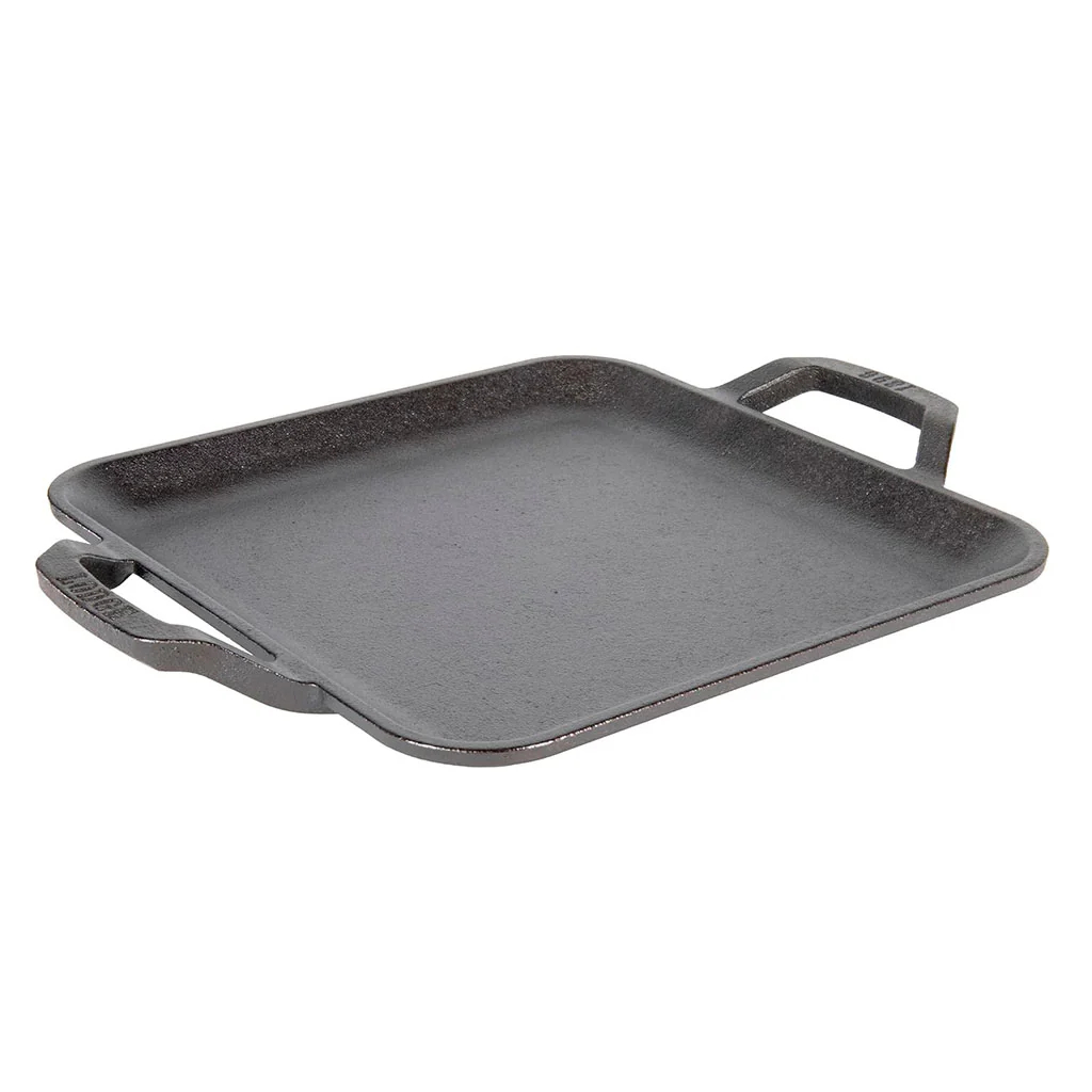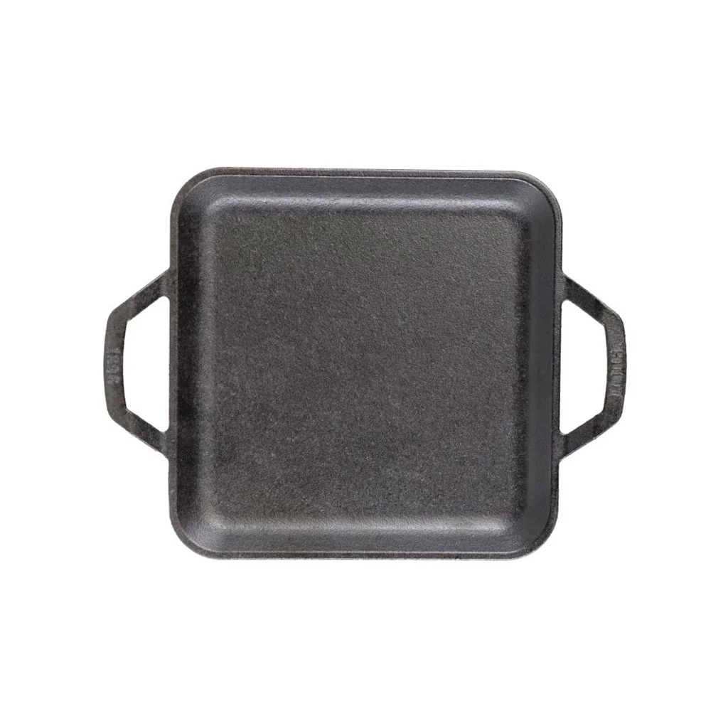 • Plancha cuadrada lisa de hierro fundido con asas.