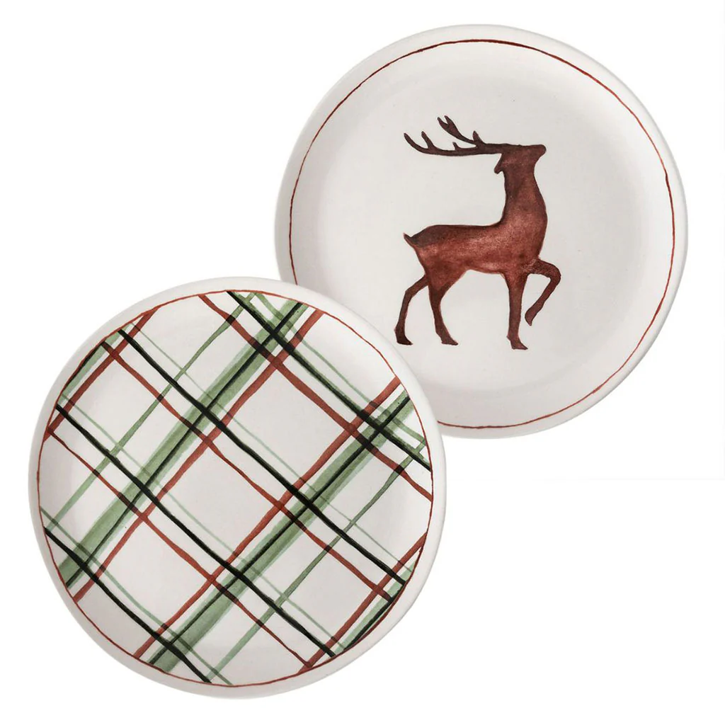 Estos platos de postre de 21 cm de diámetro, tanto con el diseño a cuadros, con su clásica combinación de colores rojo y verde, como con el diseño del reno, son unas piezas la mar de bonitas para servir el postre, el pan o el arroz para acompañar tu delicioso rustido o para presentar esos canapés festivos que con tanto cariño has preparado.