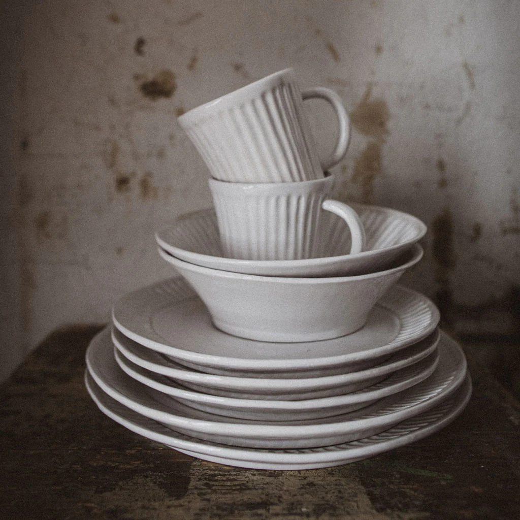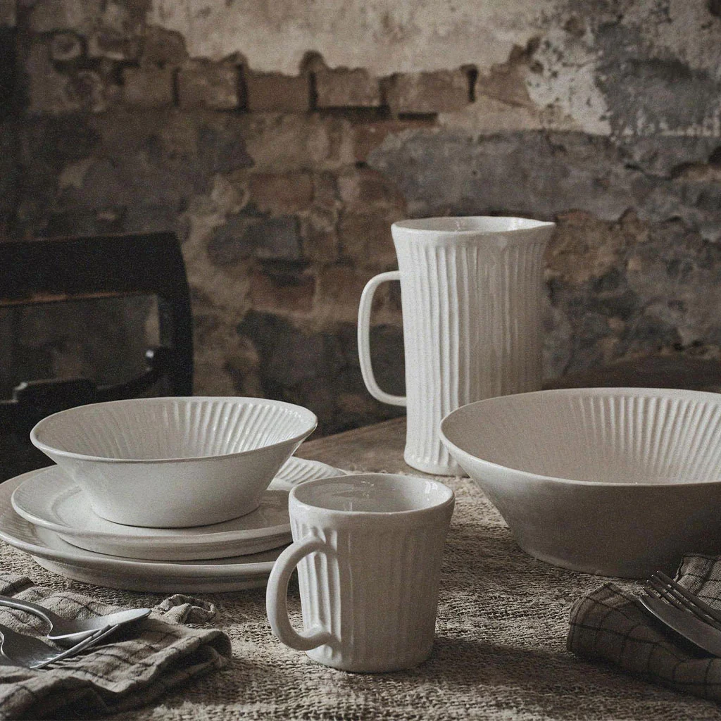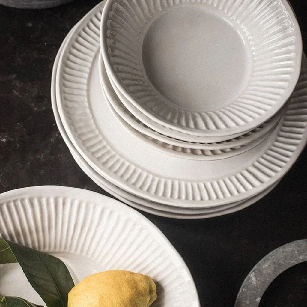 Llano, hondo o de postre, cada Plato cerámico Yolanda de Olsson & Jensen lucirá precioso en tu mesa. La suave irregularidad del borde, el hermoso esmaltado de color blanco y el relieve estriado interior, hace de estas piezas unos platos con mucha personalidad. Con su diseño atemporal, son ideales tanto para usar a diario como para las ocasiones especiales.