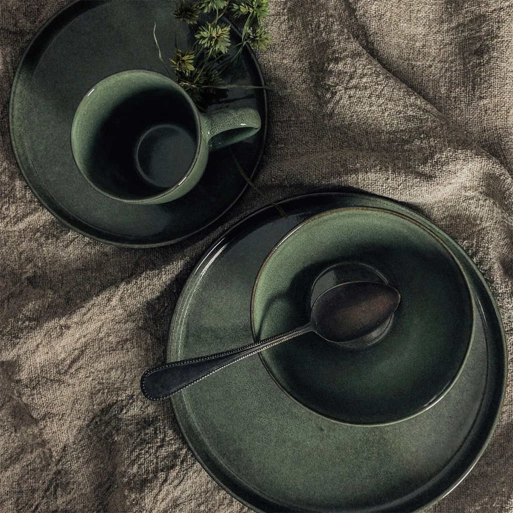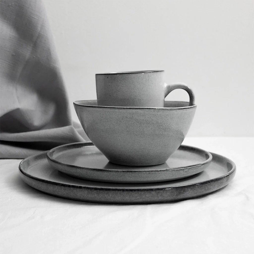 La colección Serenity de Dutch Rose captura la esencia de la vajilla rústica, inspirada en las formas limpias de la cerámica japonesa, integrando las técnicas de fabricación tradiciones con el diseño moderno del servicio de mesa. Todas las piezas son únicas, al estar hechas a mano con un esmalte reactivo especial.