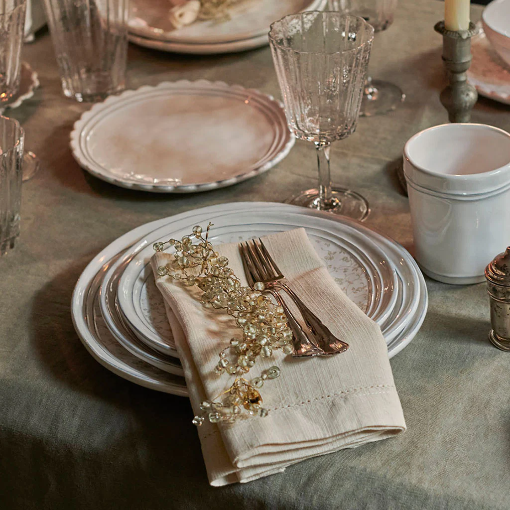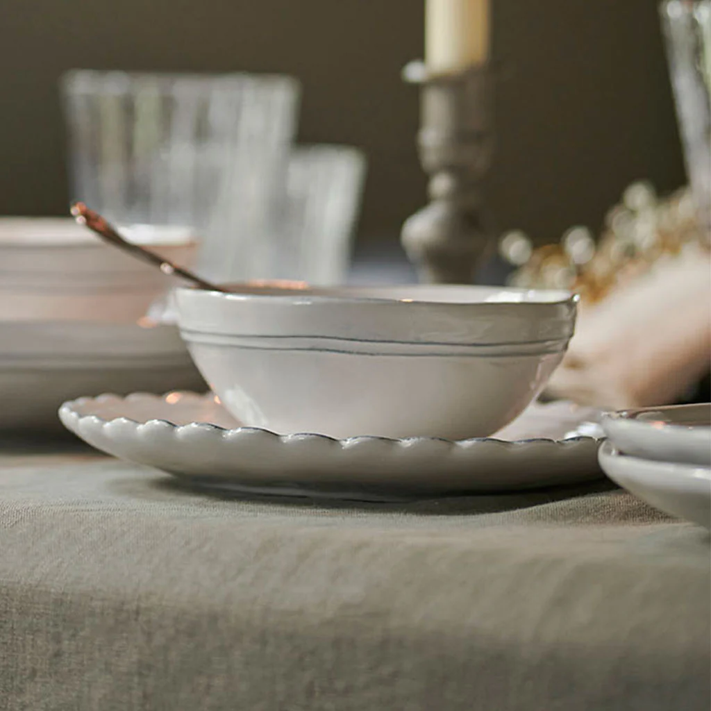 Estos preciosos platos son perfectos para su uso diario. Su borde superior ondulado les da un aspecto original y encantador que los hará lucir en la mesa, tanto si presentas unos aperitivos, como si llevas en ellos el croissant del desayuno. Y como el resto de las piezas de la colección, disponen de un esmaltado exterior vitrificado, que le aporta un tacto liso y brillante, que las hace muy fáciles de limpiar y aptas para el lavavajillas.