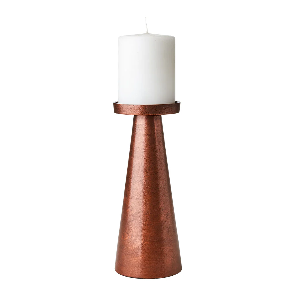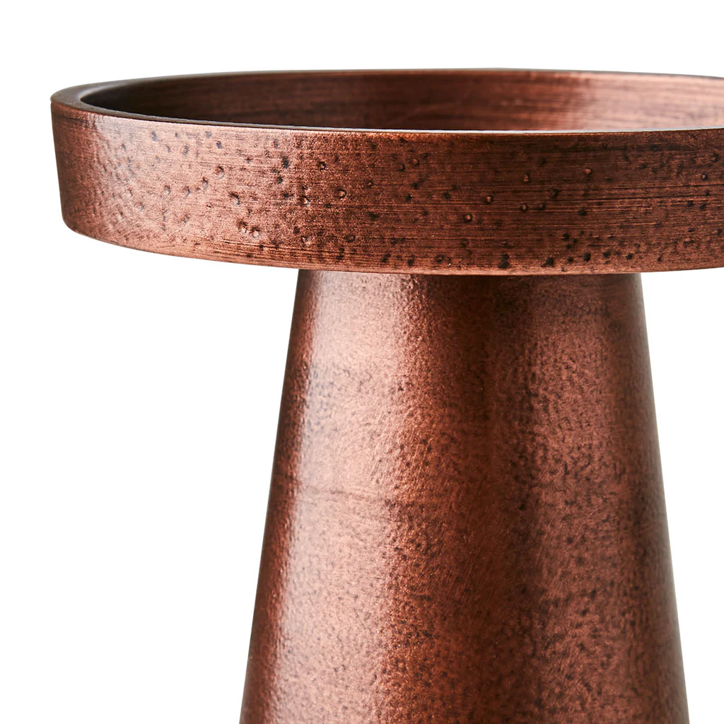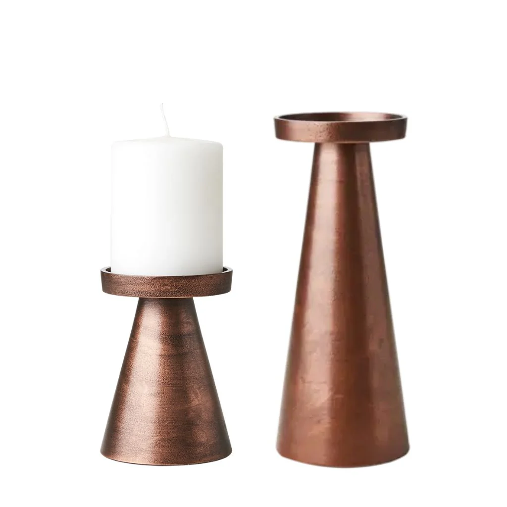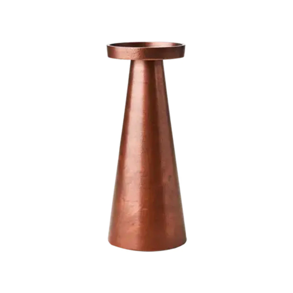 Ya sea para una cena romántica, una velada especial o simplemente para dar un toque de luz a tu espacio, este portavelas en color cobre es una elección elegante y versátil que realzará la belleza de tus velas y tu decoración en general.