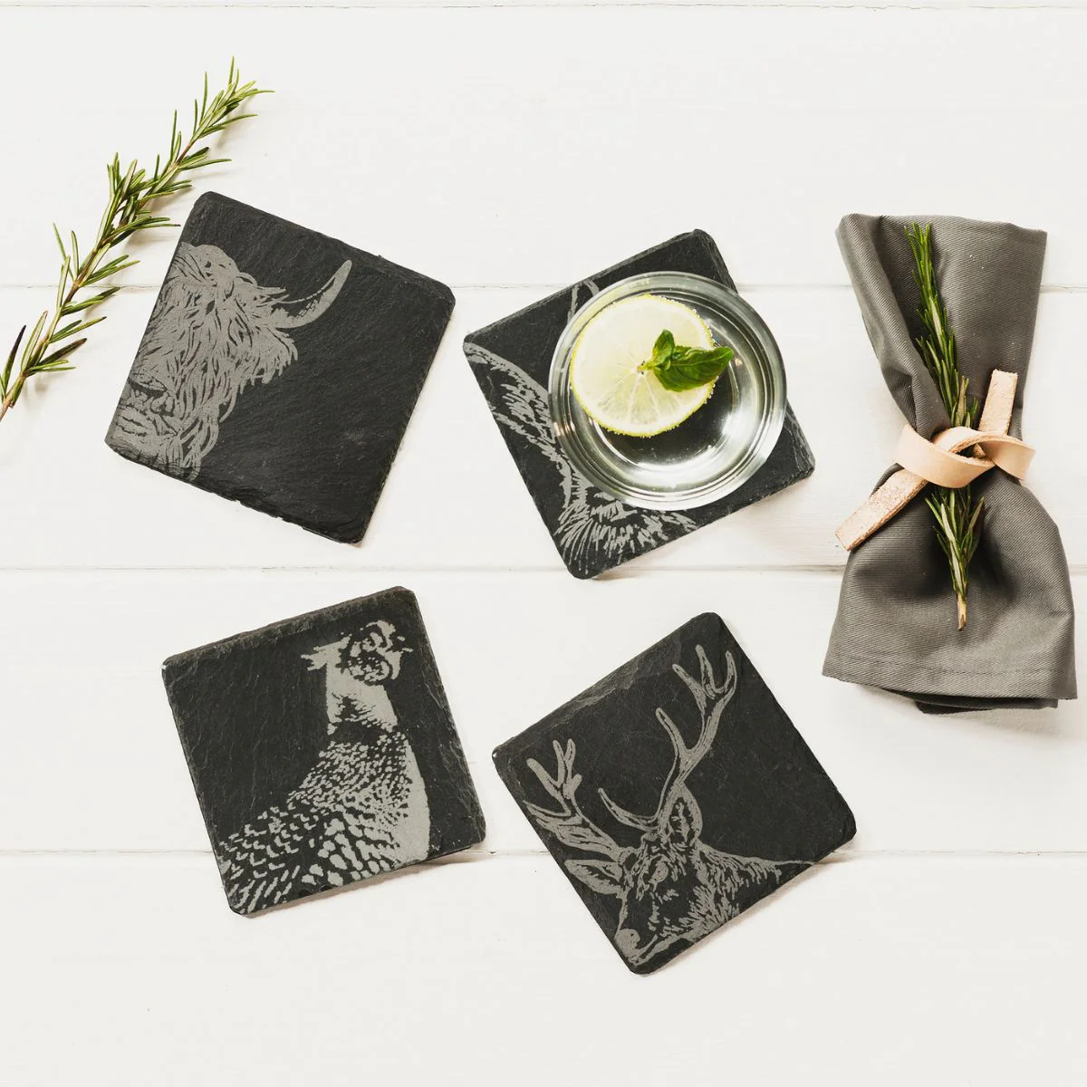 Hechos a mano con pizarra natural, los exclusivos Posavasos individuales de pizarra Selbrae son pequeñas obras de arte fabricadas en Escocia. Elegantes y con mucho estilo, además de cuidar tu mesa, al ser de pizarra ayudarán a mantener la temperatura de tu bebida. Todos los posavasos presentan un original grabado con la silueta de una imagen emblemática escocesa. Un posavasos natural, de gran calidad, resistente, duradero, funcional y tan bonito que querrás tenerlos todos.