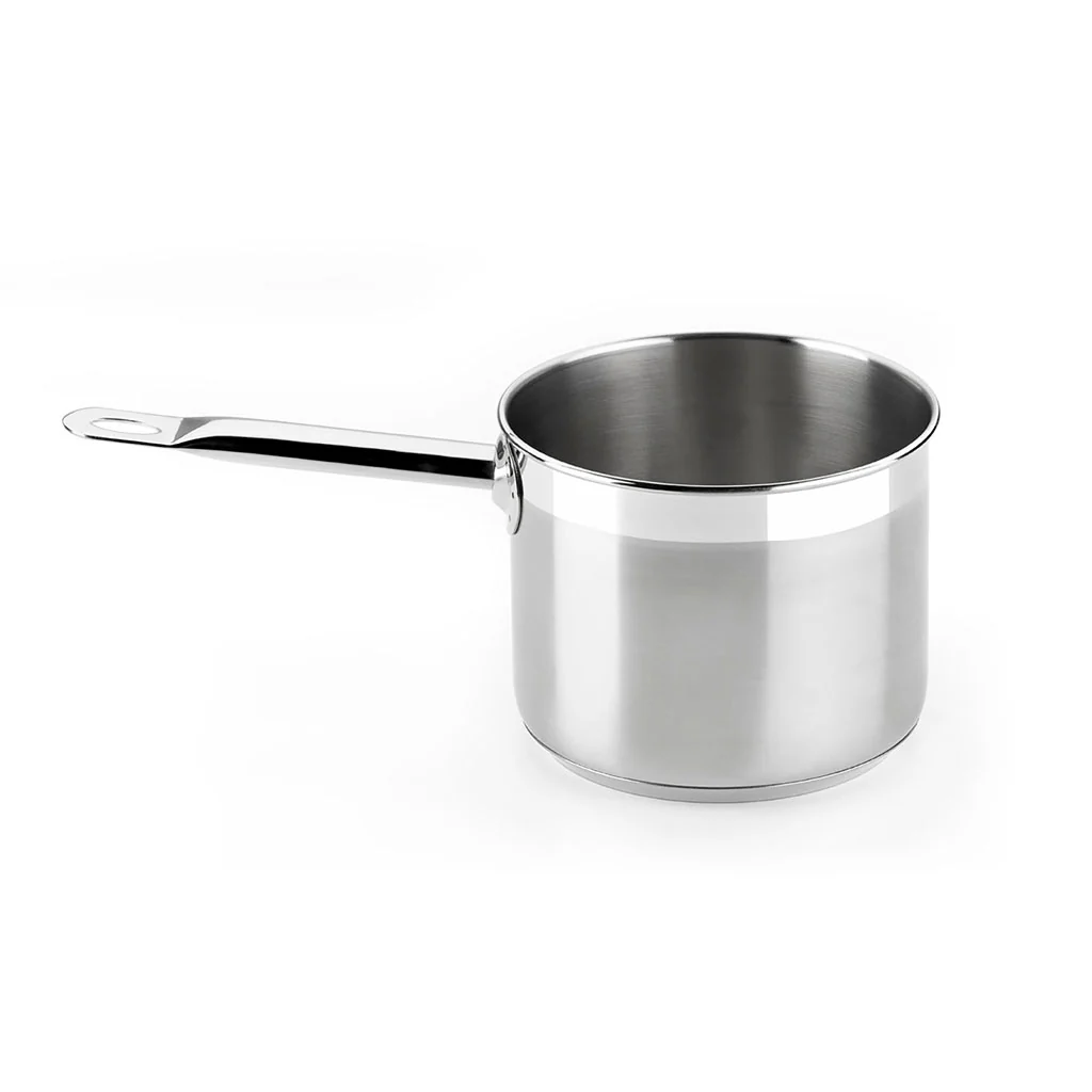 Su acabado en acero pulido 3/4 satinado y 1/4 superior pulido brillo, hacen de él un pote muy elegante y facilita su limpieza. Un cazo versátil, duradero y con un rendimiento excepcional en todas tus recetas, que lo convierten en el complemento ideal para tu cocina, ya sea doméstica o profesional.