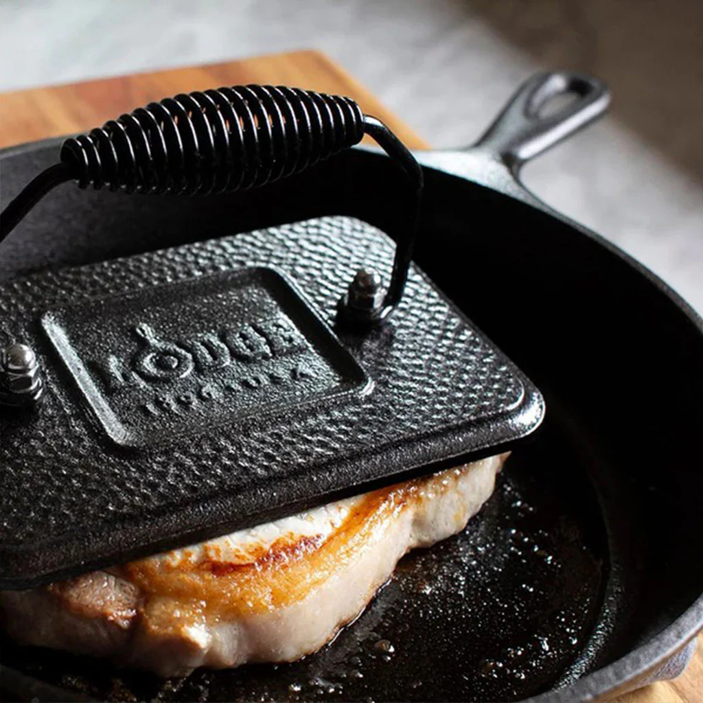 Por qué nos gusta la Prensa de parrilla de hierro rectangular Lodge