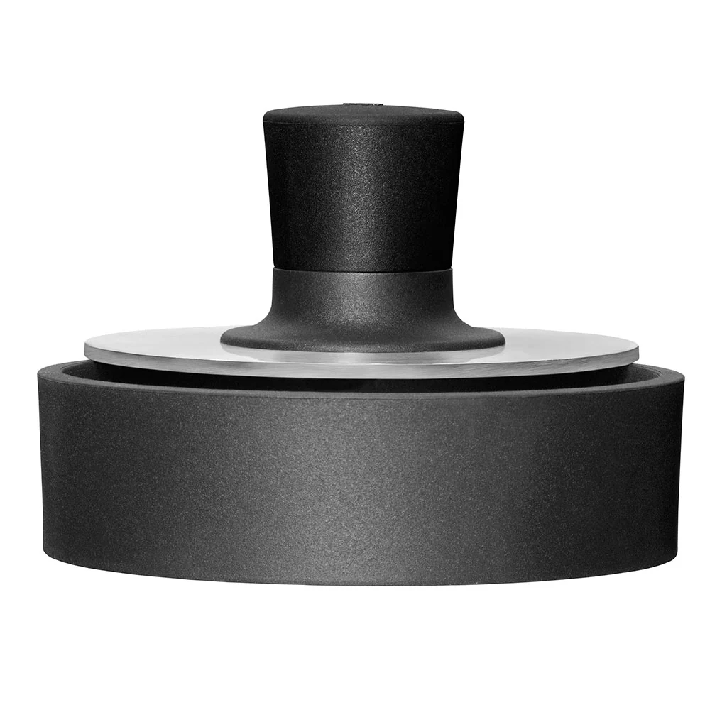 Su diámetro es de 12,5 cm y su altura es de 5,3 cm. El prensador está fabricado en acero inoxidable Cromargan® y dispone de un pomo ergonómico de plástico ABS de alta calidad y sin BPA, al igual que el molde. Podrás lavarla por completo en el lavavajillas.