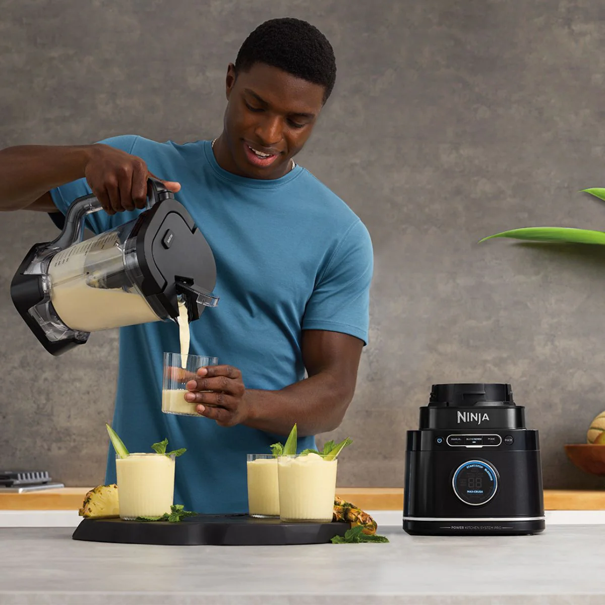 El nuevo robot de cocina inteligente de Ninja es un Procesador de alimentos y batidora de vaso 3 en 1 Detect Power Pro Ninja®, ¡que lo hace todo! Equipado con tecnología BlendSense, detecta los ingredientes y ajusta el motor, la velocidad y el tiempo para que solo tengas que preocuparte de disfrutar del mejor resultado. Con este pinche ideal podrás cortar, picar, triturar, batir, amasar, emulsionar o rallar, y preparar en un plis tus creaciones: smoothies, zumos, bebidas vegetales, purés, cremas y untables, salsas o masas. ¡Es una maravilla!