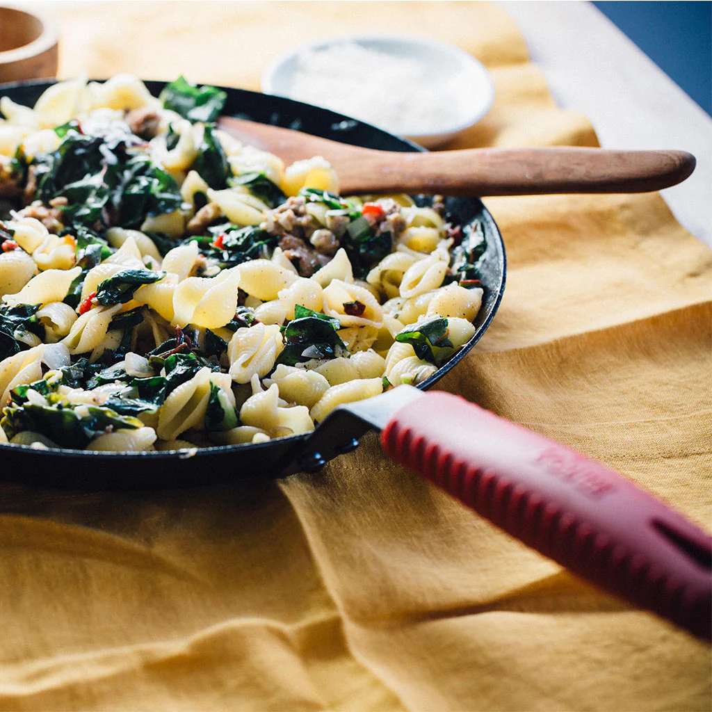 El Protector de silicona para mango caliente Lodge es el complemento que necesitas para manipular de forma segura y cómoda tus sartenes, skillets, creperas y cazos de hierro fundido Lodge. Esta funda de silicona de alta calidad es resistente a temperaturas de hasta 260 °C. Diseñada para adaptarse a los mangos de los utensilios Lodge, protegerá tus manos del calor del hierro fundido, para que puedas sujetar la sartén sin quemarte al llevarla de la cocina al horno, o del horno a la mesa con seguridad.
