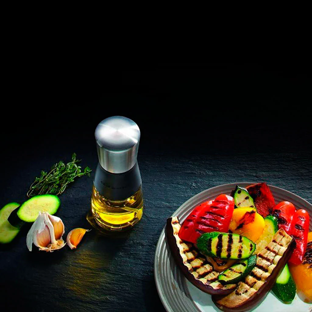NOTA: Aunque es perfecto para aceites aromatizados, no debe usarse con aceites que contengan trozos de especias o hierbas, ya que podrían obstruir el mecanismo.
