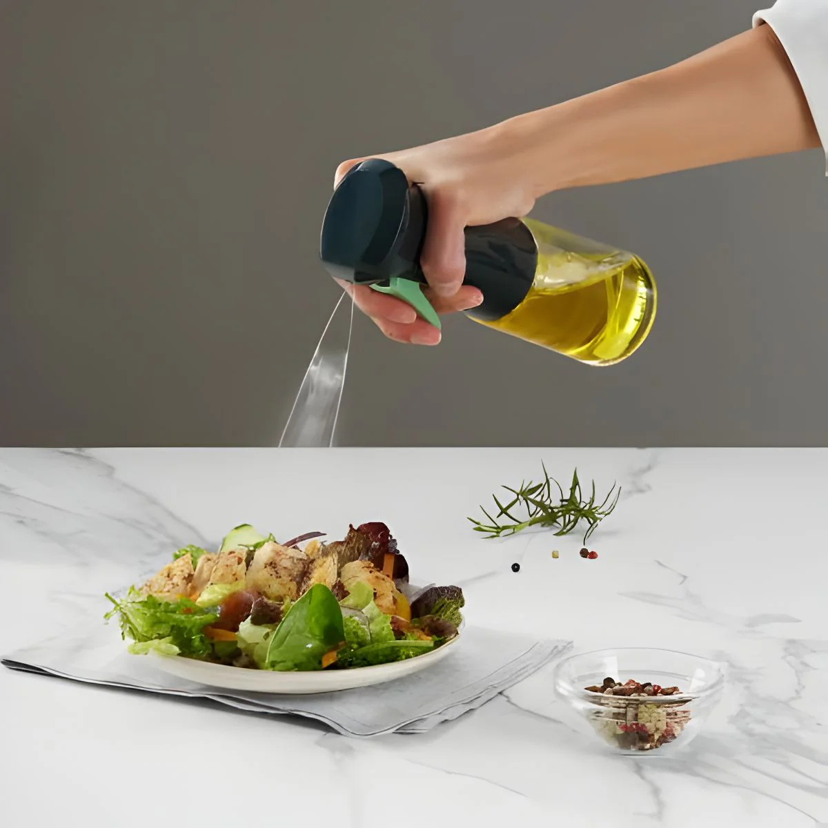2. Su pulverización fina ayuda a ahorrar en aceite y vinagre. La dosificación es más controlada.