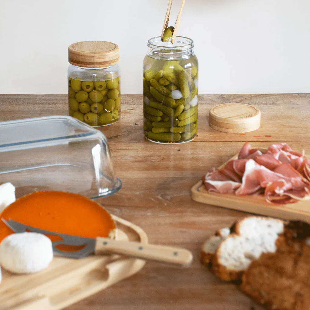 Esta pieza es perfecta para transportar los quesos desde la nevera a la mesa, facilitando su presentación con estilo. El cristal mantiene los quesos en condiciones óptimas, preservando su frescura y sabor. Además, la elección del bambú como base no es casualidad: esta madera es altamente resistente a la humedad, lo que garantiza la durabilidad del recipiente y la protección adecuada para los quesos.