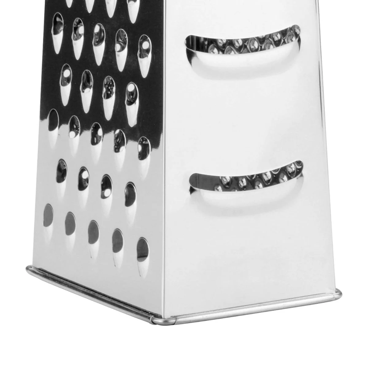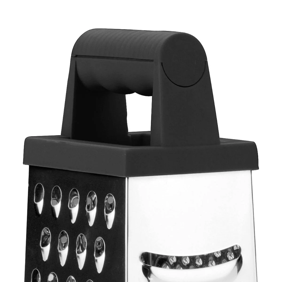 Con deslizar el ingrediente en cuestión por una de sus caras es suficiente para rallar, rebanar o hacer tiras cómodamente. Cada una de las cuatro caras de este rallador cuenta con afiladas cuchillas de acero inoxidable que permiten rallar obteniendo un resultado distinto: grueso, mediano, fino o laminado.