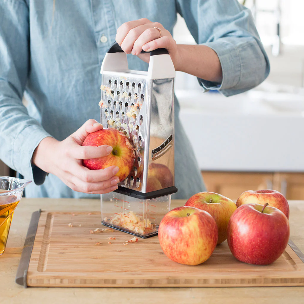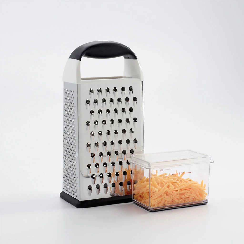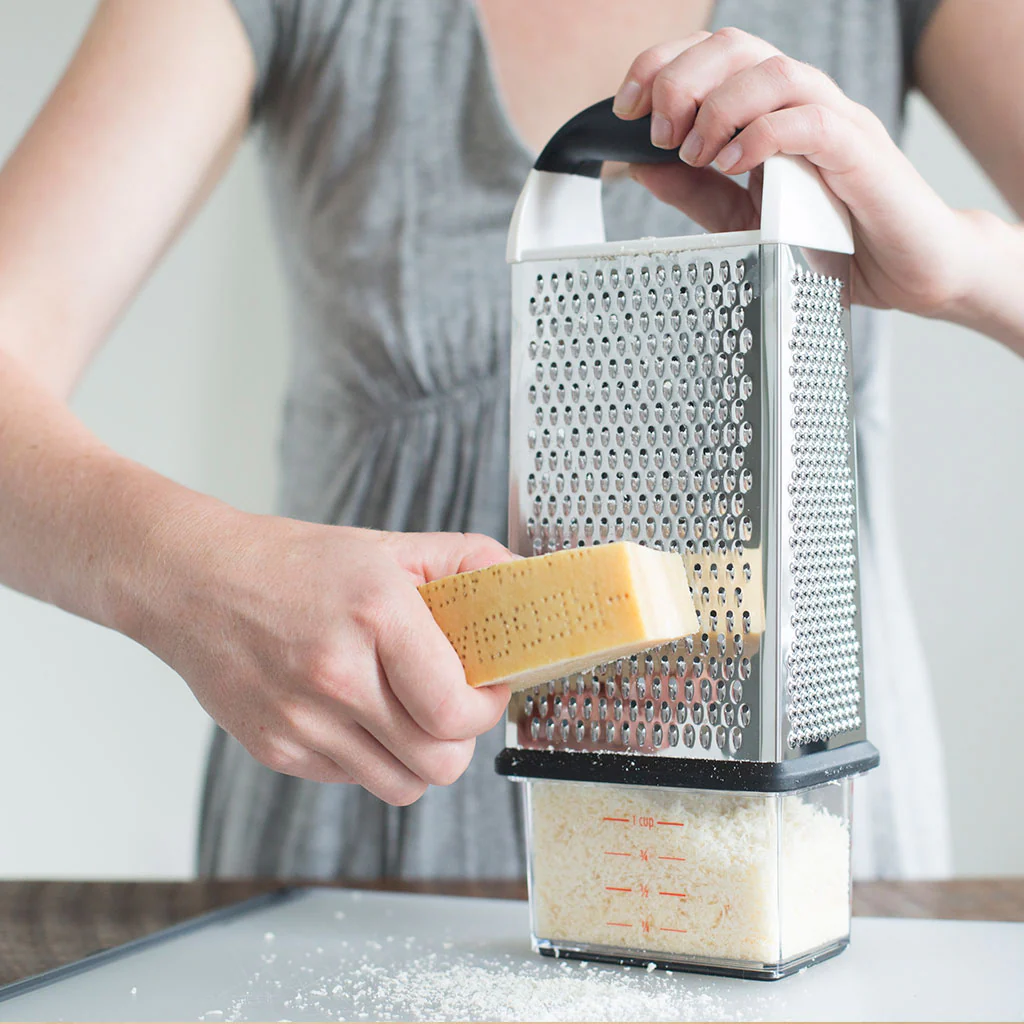 El Rallador de 4 caras de OXO es el aliado perfecto para preparar tus recetas de forma rápida y sencilla, permitiéndote cortar, laminar y rallar en diferentes grosores sin necesidad de cambiar de utensilio.