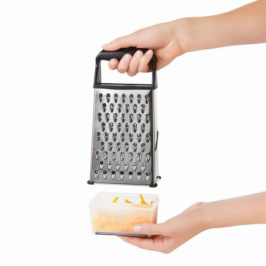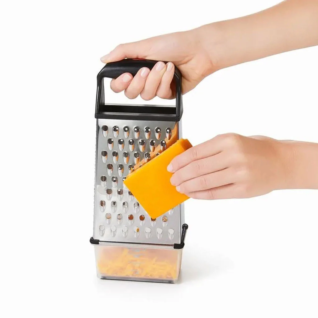 Este versátil rallador contiene unas cuchillas de acero inoxidable que cortan y rallan en ambas direcciones que te permitirán lograr resultados muy eficientes con menos esfuerzo y más rapidez. Además, dispone de una asa de agarre y de una base antideslizante para que puedas manejarlo con total seguridad. Al poderlo sujetar y mantenerse estable en la superficie sobre la que lo coloques, impedirás que se desplace o se vuelque.