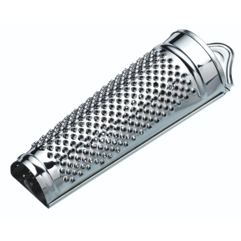 Este rallador tiene forma cónica, lo que garantiza que cualquier alimento rallado se dirija directamente a tus recipientes, sartenes o a tus platos, sin derrames ni desorden. Además, su diseño inteligente lo convierte en un práctico contenedor para guardar tus especias frescas. Cuenta con una tapa abatible que asegura un almacenamiento seguro, manteniendo tus especias listas para tus próximas creaciones culinarias. Su construcción en acero inoxidable garantiza durabilidad y facilidad de limpieza.