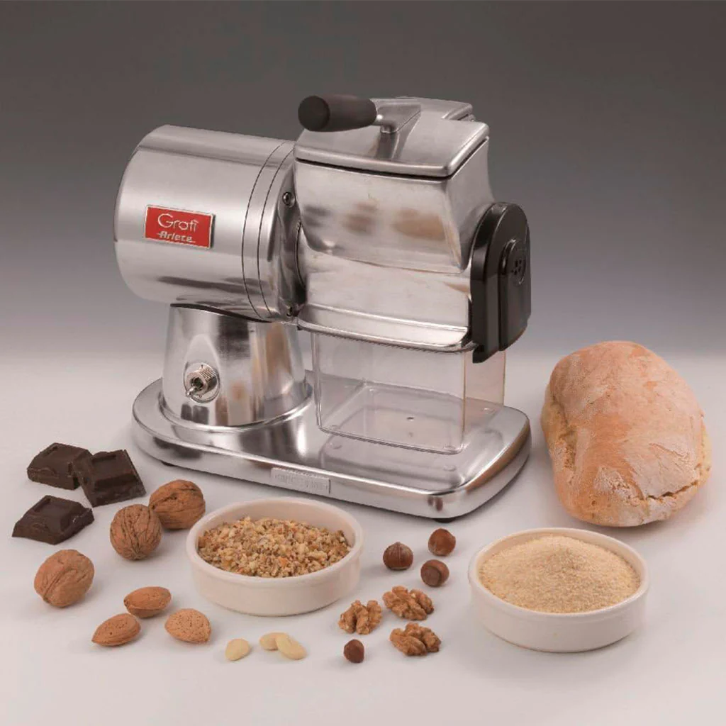 El Rallador eléctrico profesional Gratì Superior Ariete es un rallador eléctrico ideal para un uso intensivo. Equipado con un motor de inducción silencioso y un rodillo profesional de acero inoxidable, garantiza un alto rendimiento y una gran durabilidad. Con él podrás rallar grandes cantidades de quesos duros, frutos secos, chocolate o pan, entre otros alimentos, con un resultado rápido y totalmente profesional.