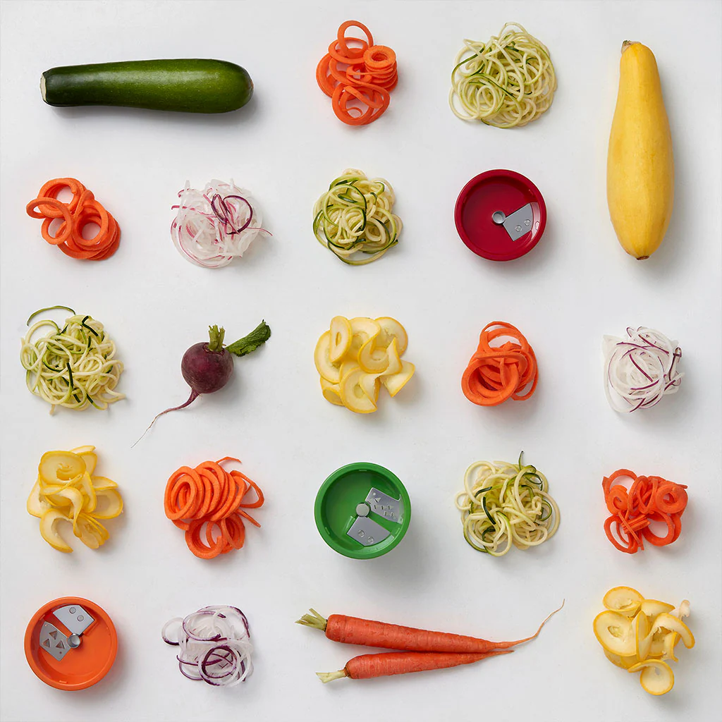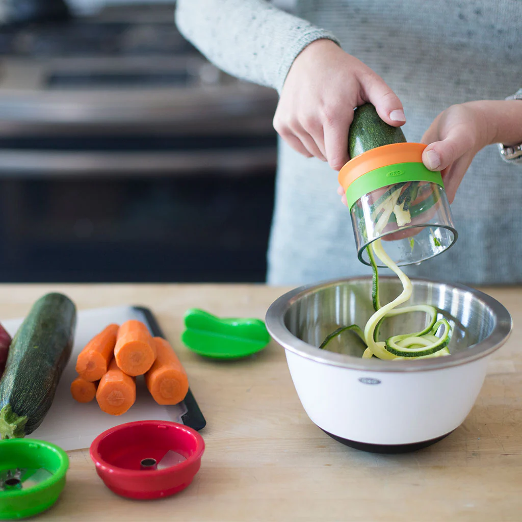 El Rallador en espiral de 3 cortes OXO es la herramienta ideal para transformar tus verduras y frutas en una alternativa creativa y saludable a la pasta tradicional.