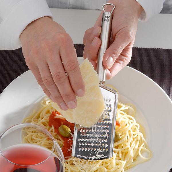 Pequeño, simple y de lo más efectivo, el Rallador medio WMF es ideal para rallar quesos, zanahoria, manzana, cebolla o chocolate, entre otros, en un momento y obteniendo una ralladura de tamaño fino/medio, perfecta tanto para la elaboración de bizcochos, salsas y otras preparaciones como para la decoración de platos de pasta, arroz y otros platos salados, así como la decoración de todo tipo de repostería.