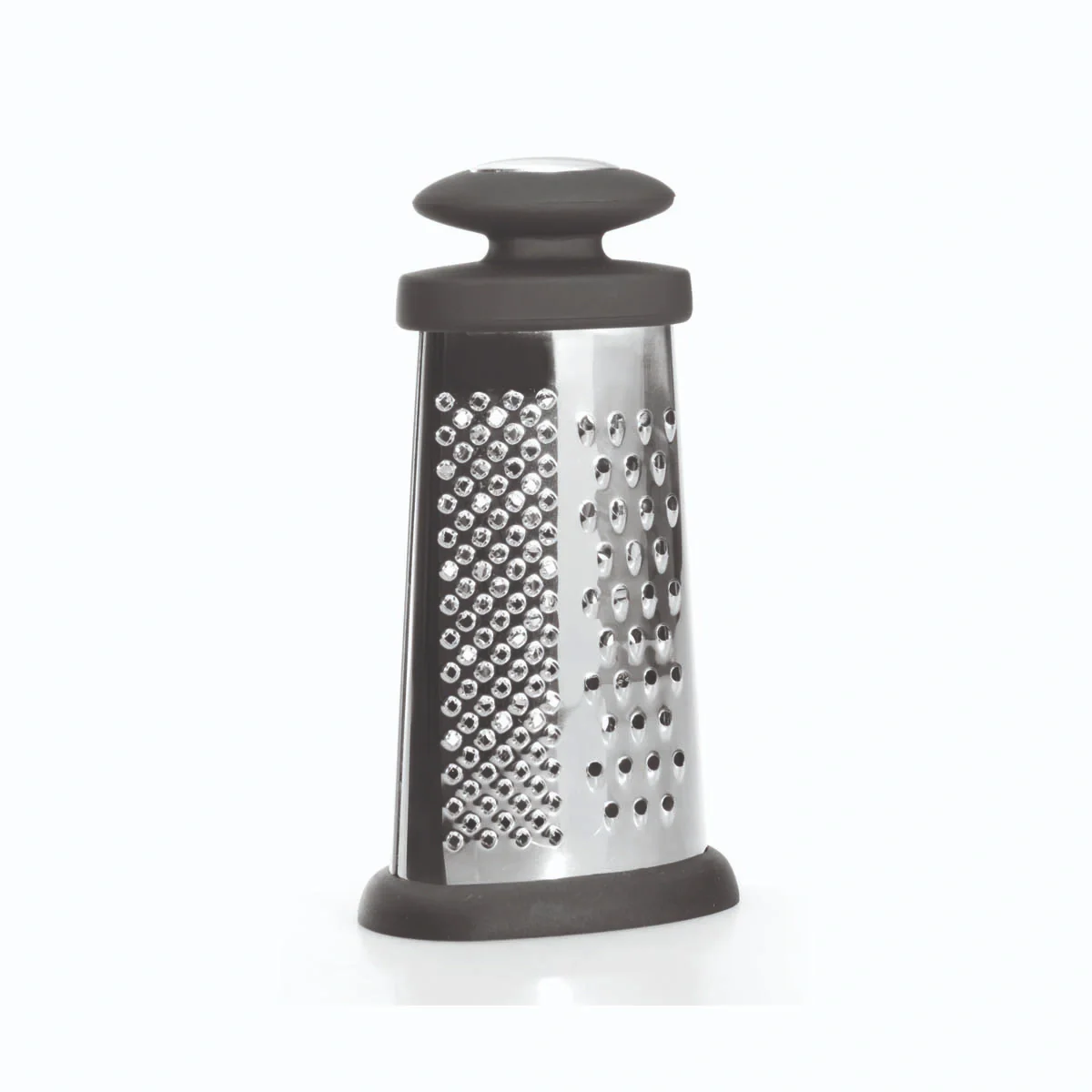 - – Base de goma. – Apto para el lavavajillas. – Rallador ovalado de acero inoxidable. – 4 caras: · Grueso. · Mediano. · Fino. · Laminado. – Altura 15,50 cm. – Mango de plástico con recubrimiento suave. – Base de goma. – Apto para el lavavajillas.
