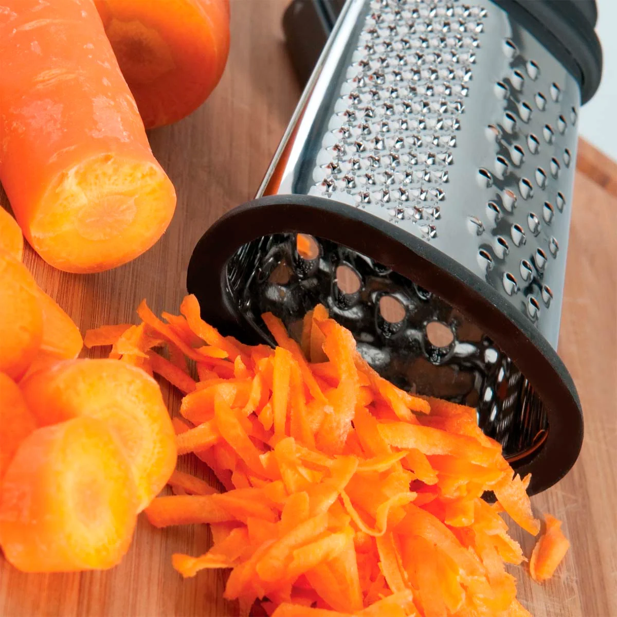 - Este rallador ovalado nos gusta porque es un 4 en 1: nos ofrece la posibilidad de rallar con diferentes tamaños e incluso laminar de forma cómoda.