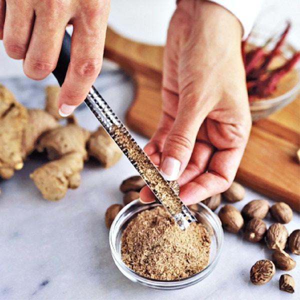 Este rallador es la versión del modelo clásico de Microplane pero diseñado para rallar especias y alimentos duros con facilidad. Dispone de la cuchilla más fina por lo que resulta ideal para rallar una pizca de nuez moscada, jengibre, ajo o chocolate. Mide 21cm de largo y tiene una superficie de corte de 12,2×1,3cm.