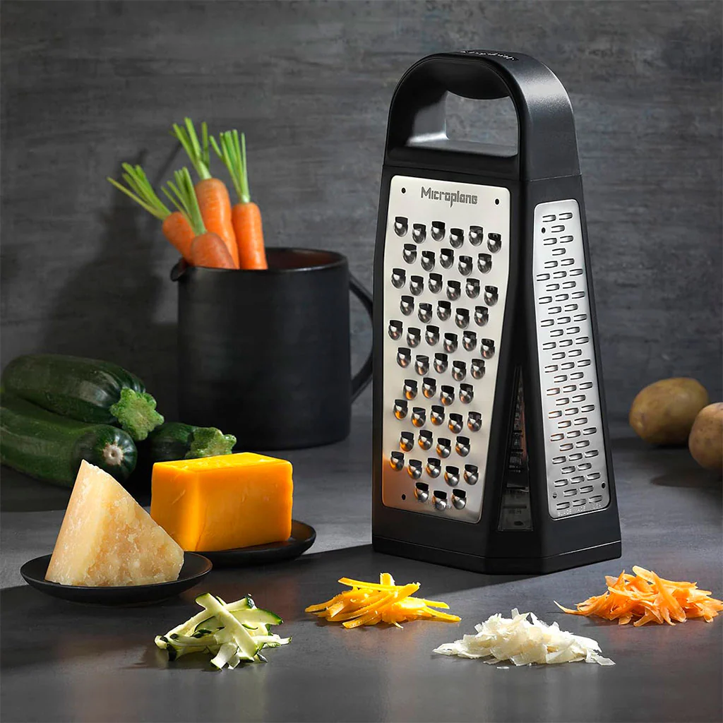 Microplane es una empresa líder en herramientas de corte y rallado de alta calidad. Si el Zester se ha convertido en una herramienta indispensable en la cocina moderna, con este rallador tendrás en un único utensilio distintas posibilidades, con la calidad y el afilado que ofrece Microplane.
