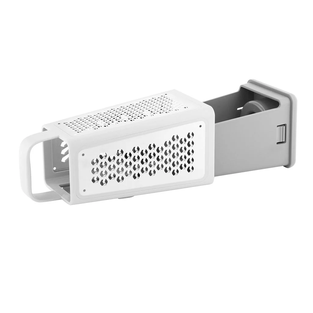 El Rallador Z-CUT de 4 caras de Zwilling es un ayudante ideal en la cocina. Con tres caras para rallar fino, medio y grueso y una para laminar, podrás rallar y cortar fácilmente frutas, verduras, quesos o chocolate. Dispone de una funcional bandeja de recogida integrada y de una cubierta protectora para guardarlo con seguridad.