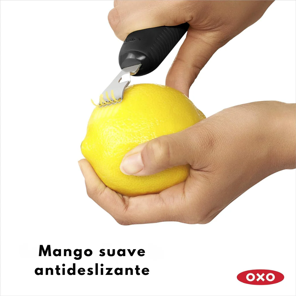El Rallador Zester corta-tiras OXO es la herramienta ideal para rallar y cortar tiras de cítricos como limones, limas y naranjas de manera sencilla. Su diseño elegante y moderno combina funcionalidad y estilo, convirtiéndolo en un accesorio imprescindible para guarniciones, cócteles o cualquier receta que necesite un toque cítrico.