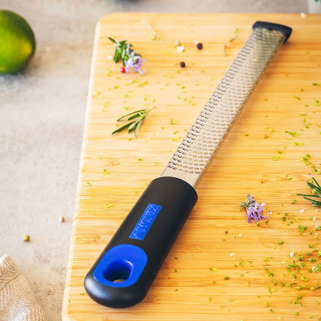 La calidad se nota: gracias a las cuchillas de acero inoxidable que no desgarran, sino que cortan limpiamente, conservarás los sabores y aromas de los ingredientes. Además, presenta un nivel de seguridad añadido mientras rallas, gracias a los extremos antideslizantes que fijan el zester en su lugar mientras rallas.