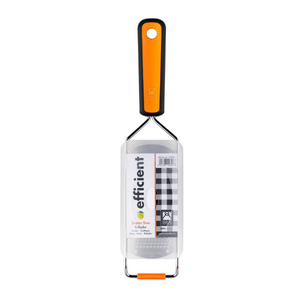 El rallador Zester fino Efficient de BRA es el utensilio perfecto para que puedas rallar cualquier tipo de cítricos, quesos, chocolate o frutos secos para dar ese toque mágico e inconfundible a tus recetas.
