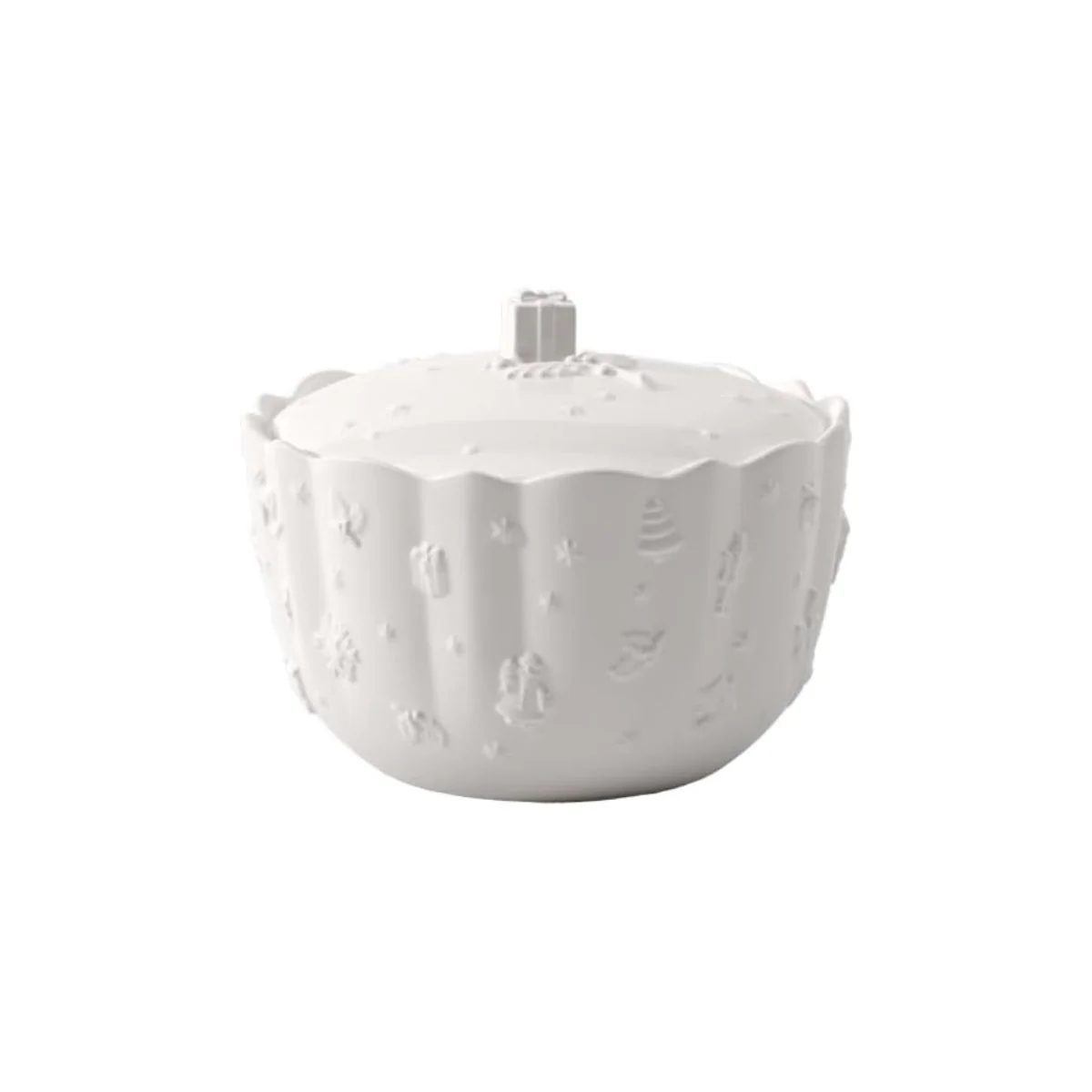 Con su 1,9 l de capacidad, es perfecto para guardar y conservar las galletas de jengibre, tus cookies más navideñas, tus bombones favoritos o las pastas de té. Es tan precioso que no podrás dejar de mirarlo. Sobre el blanco clásico de la porcelana destacan los icónicos relieves de la colección. Ideal para combinar con tu vajilla de Navidad, es perfecto para cualquier ocasión y, sin duda, es un regalo maravilloso.