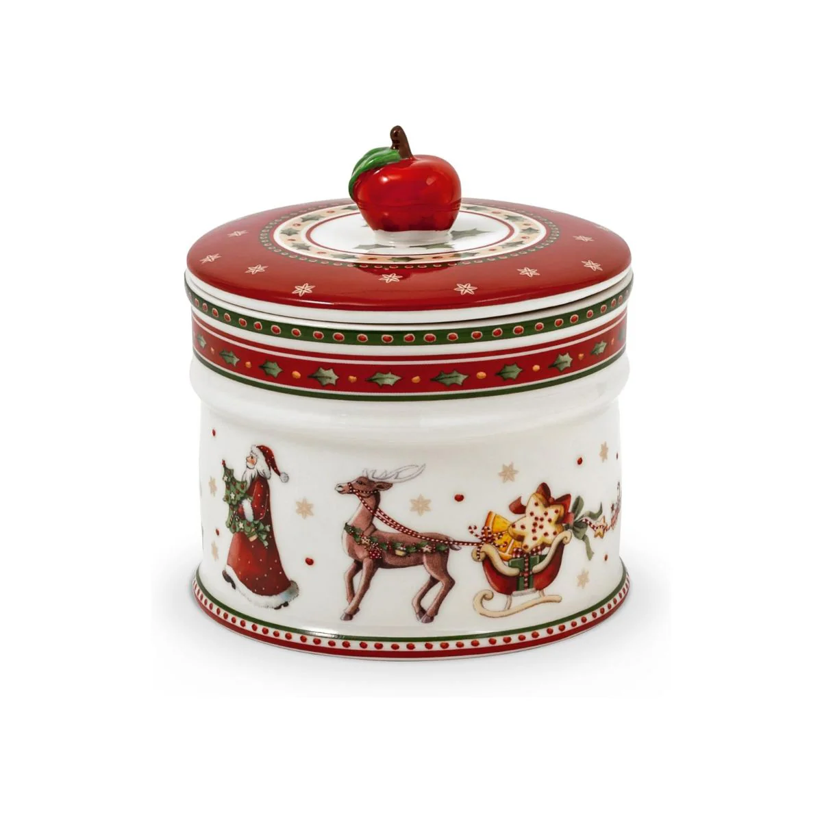 Cuando levantes la tapa del Recipiente de porcelana para galletas Winter Bakery Delight Villeroy & Boch, verás como el olor a Navidad inunda la estancia. En su precioso diseño al estilo de las tradicionales cajas de galletas de hojalata, la realista y colorida manzana del pomo destaca de forma encantadora. Hojas de acebo, estrellas, o Papa Noel y su trineo cargado de regalos son algunos de los motivos festivos que decoran este precioso tarro para galletas de porcelana prémium.