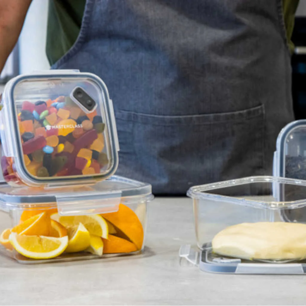 El Recipiente MasterClass KitchenCraft está diseñado para facilitarte el almacenamiento y la conservación de alimentos, ideal para llevar tu comida al colegio o al trabajo. Gracias al cierre hermético de silicona y al cierre a presión a prueba de fugas, te garantizará la preservación segura de alimentos sin derrames. A pesar de ser de plástico, tiene un aspecto y tacto de vidrio, pero irrompible, lo que te proporcionará protección ante caídas o golpes del tupper en tus comidas diarias.