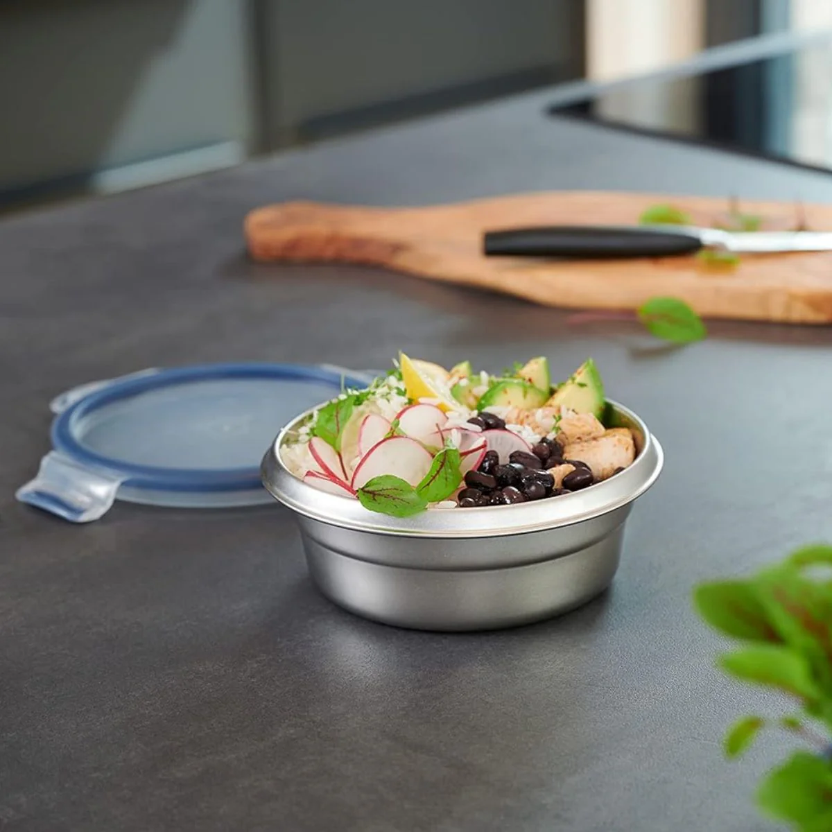Su tapa con cierre hermético garantiza un cierre perfecto que evita la entrada de humedad, lo que ayuda a prolongar la frescura de tus alimentos y a evitar que se mezclen los sabores o absorban olores. A diferencia de las fiambreras de plástico, estos recipientes están hechos para durar y siempre se verán como nuevos. ¡Te durarán toda la vida!