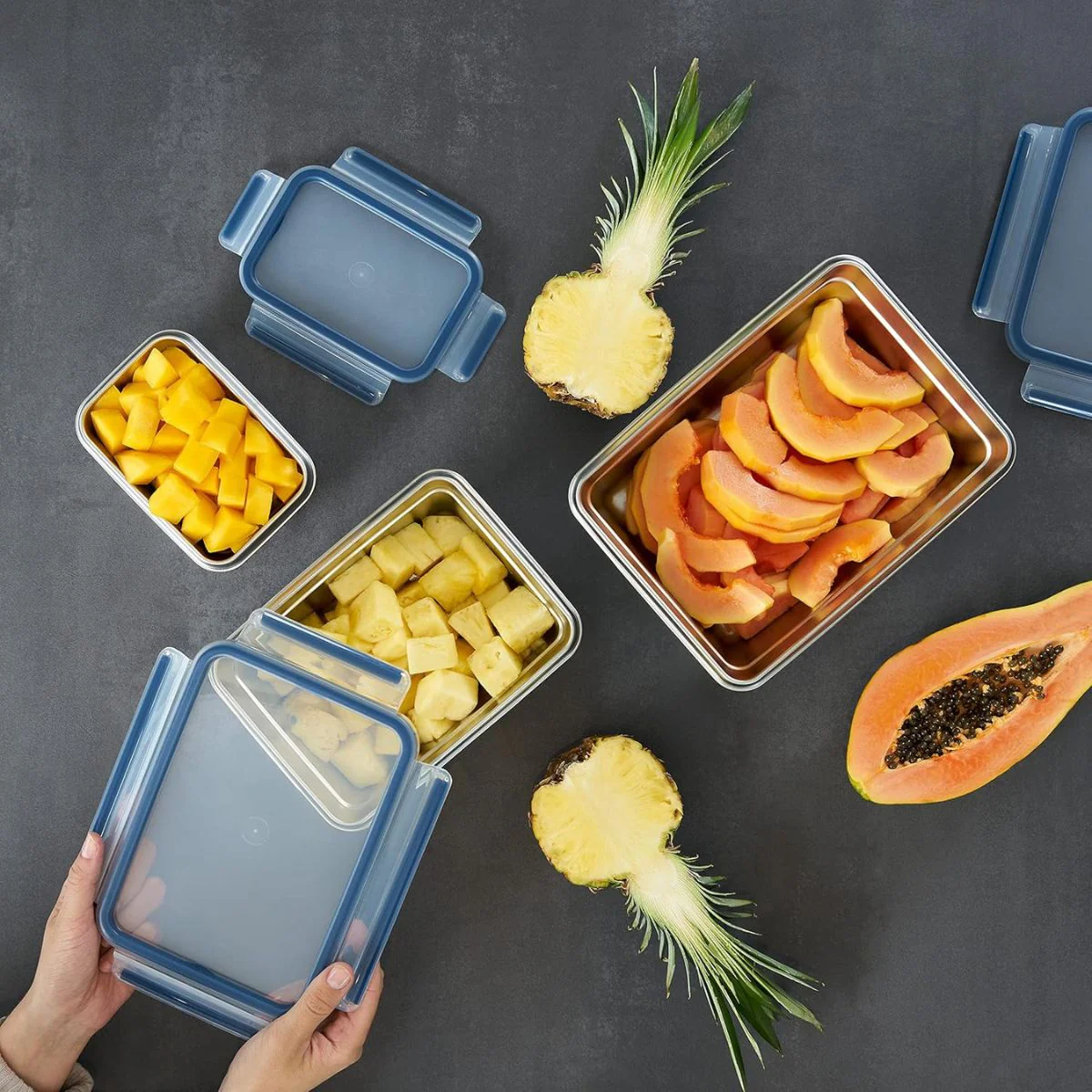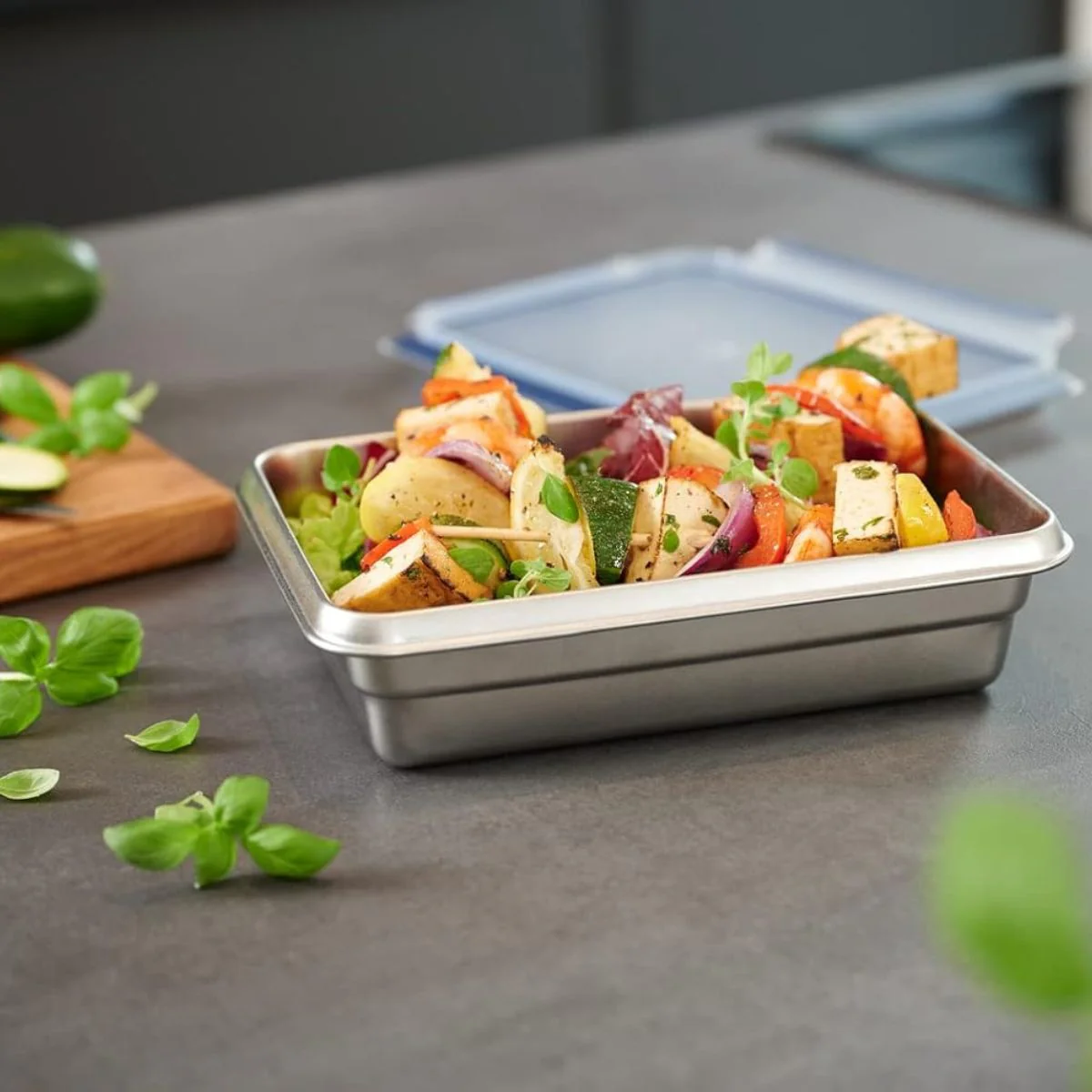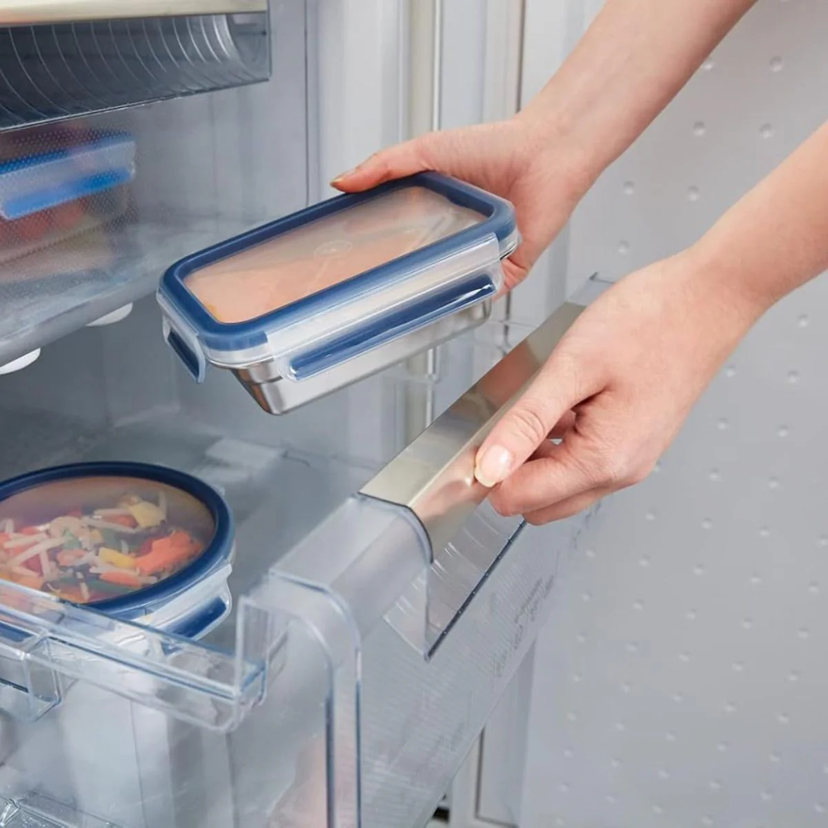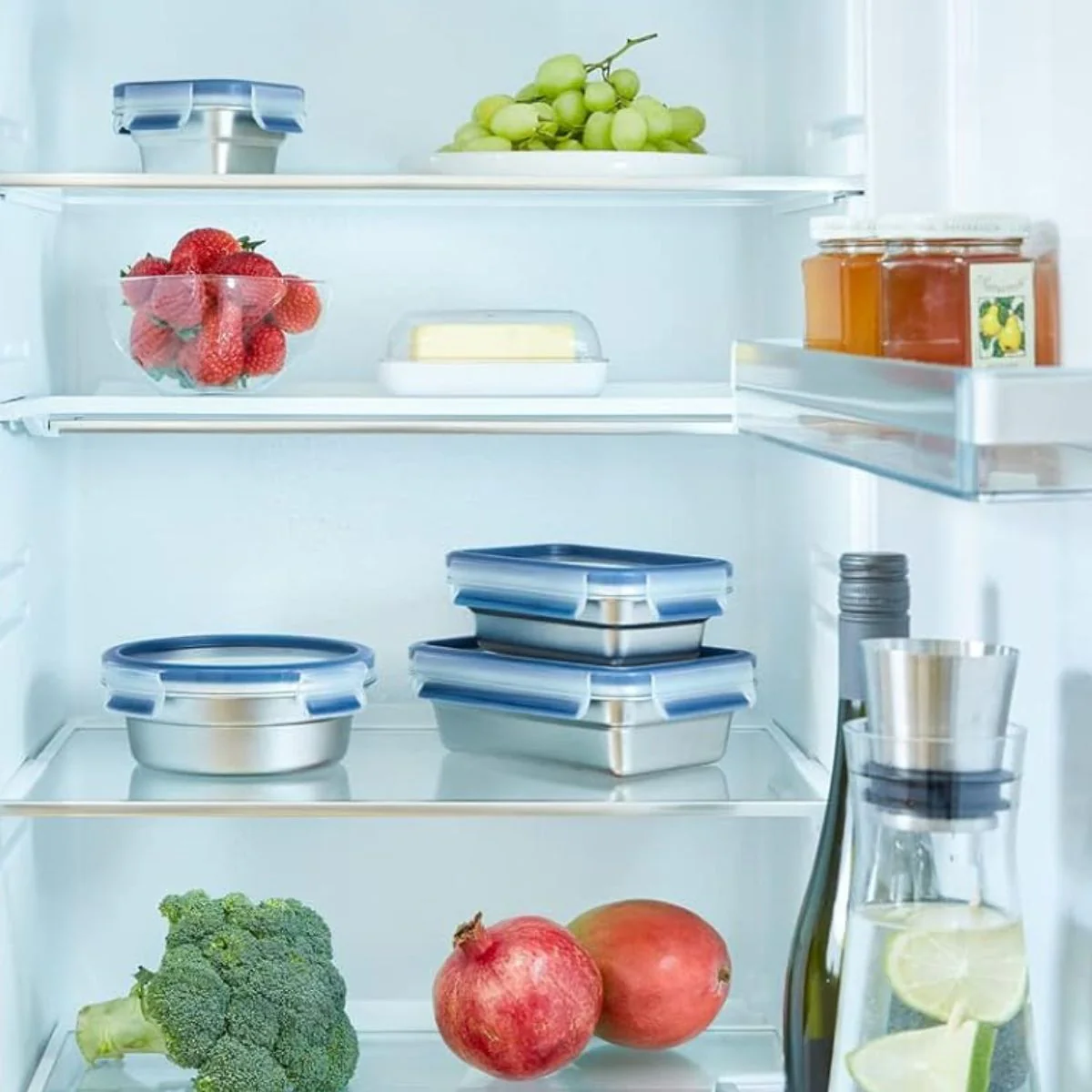 Los nuevos tuppers de acero inoxidable EMSA están disponibles en distintas formas y capacidades que se adaptarán a todas tus necesidades en la cocina. Cuentan con un diseño optimizado que les otorga una mayor estabilidad, lo que los convierte en la opción ideal para el almacenamiento en casa y para llevar tus recetas fuera de ella. Además, gracias a su estructura robusta, podrás apilarlos fácilmente, lo que te ayudará a organizar mejor tu cocina y ahorrar espacio en la nevera.