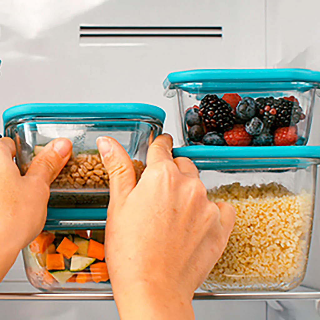 - Recipientes apilables gracias al diseño de su tapa.