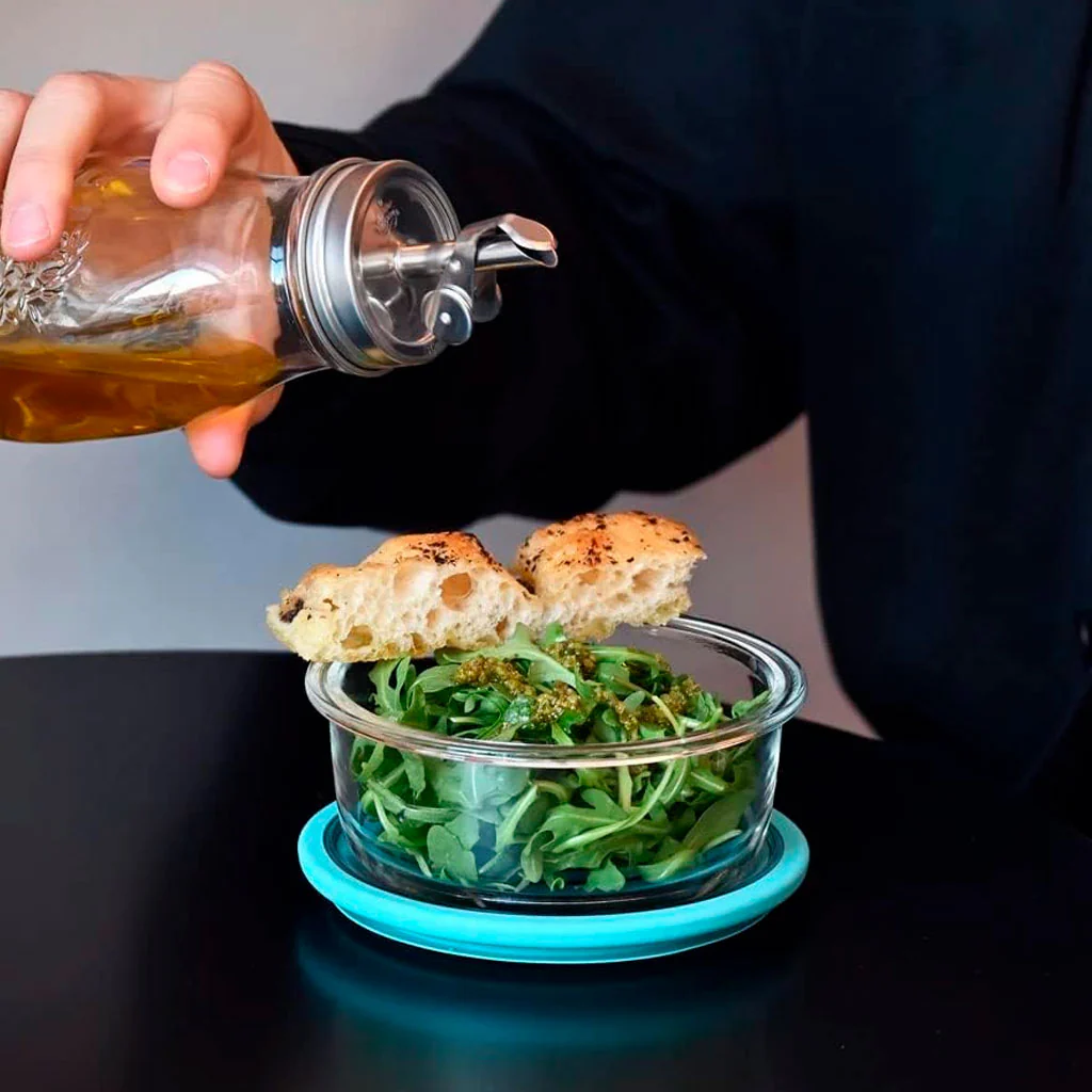 - La junta de silicona, que cubre el aro de la tapa, está diseñada para adherirse al vidrio a la perfección, garantizando un cierre hermético para la óptima conservación del contenido.