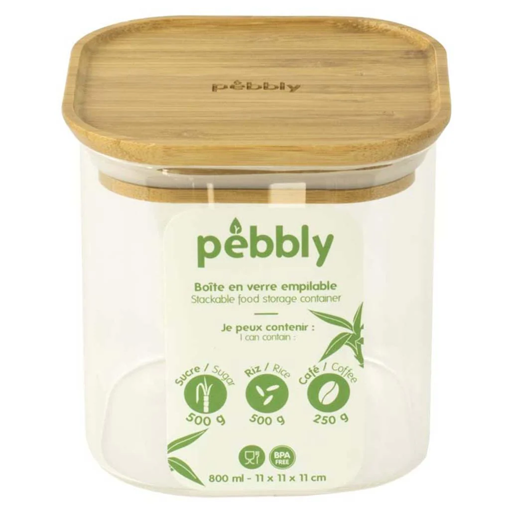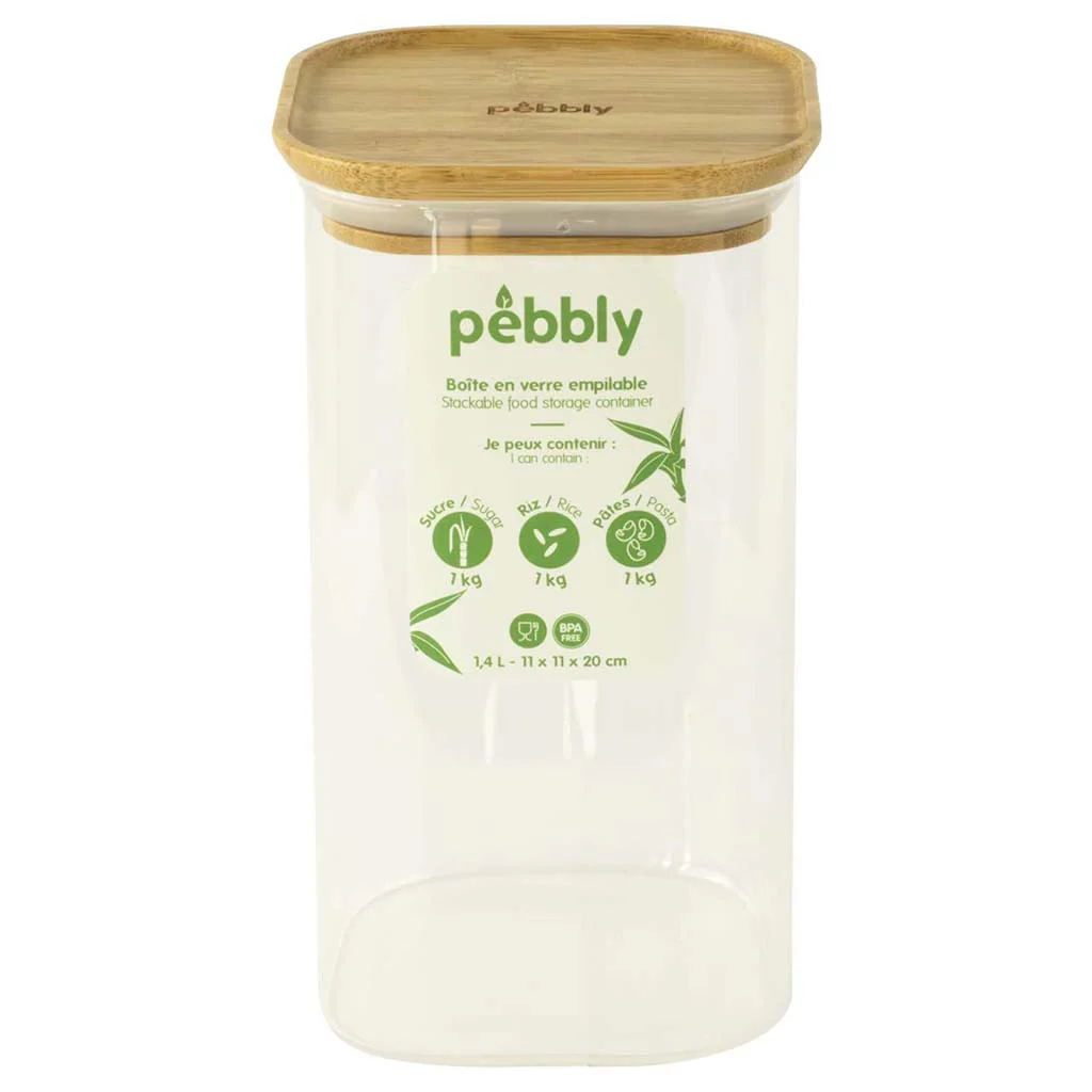 Recipientes herméticos de cristal con tapa de bambú Pebbly
