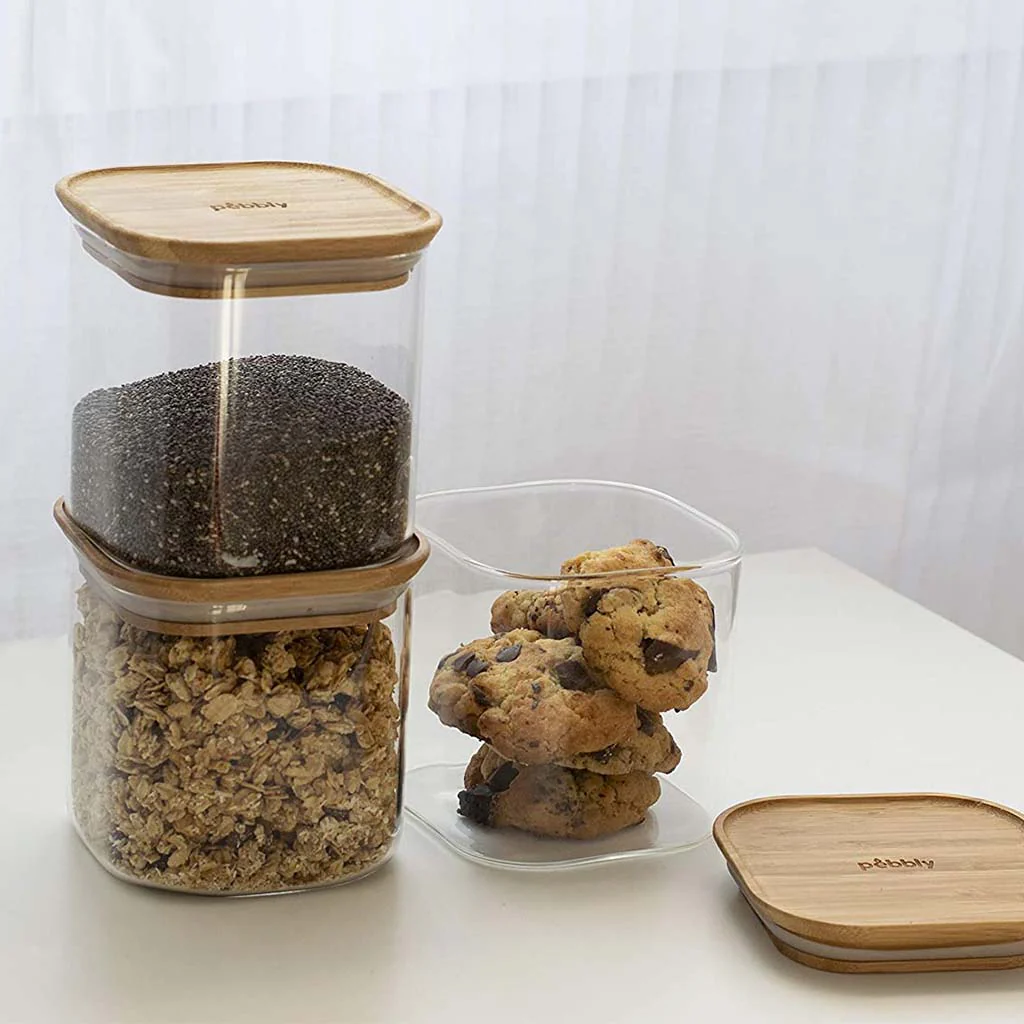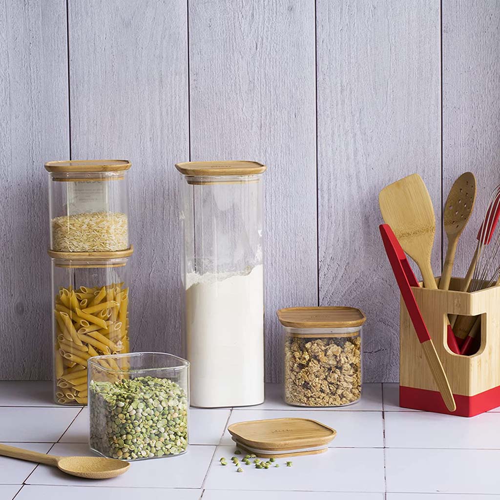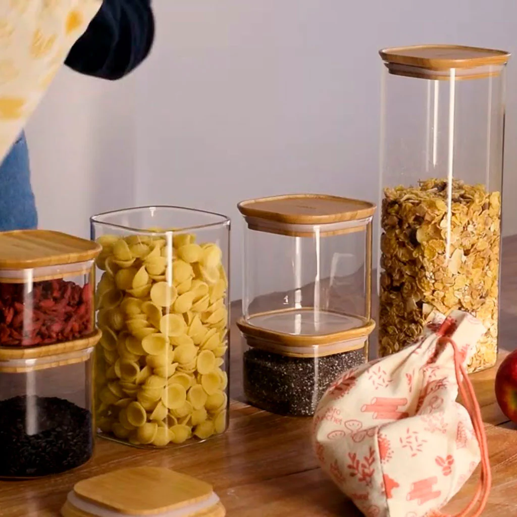 Por qué nos gustan los Recipientes altos de cristal con tapa de bambú de Pebbly