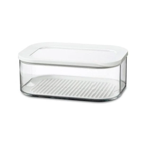 Las cajas para tus alimentos de Modula son de lo más práctico. Te permiten ver con solo una ojeada su contenido al ser transparente tanto el cuerpo, como la tapa. Su anillo blanco de sellado garantiza un cierre perfecto para una total conservación de los alimentos.