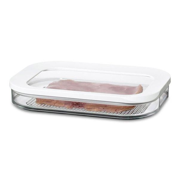 Tanto el recipiente para el queso, con sus 2 litros de capacidad, como las cajas para fiambres, son perfectas para guardar, además de los embutidos en lonchas o las cuñas de tu curado preferido, los cortes de carne roja, patés, las pechugas de pollo o incluso filetes del pescado que más te guste.
