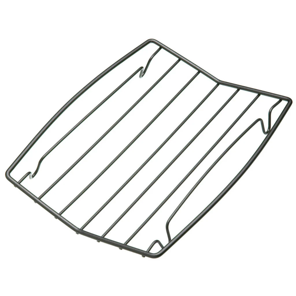 Gracias a su forma y dimensiones, se adapta a una gran variedad y tamaños de bandejas, ya sea la misma del horno u otras fuentes que tengas en casa. Sus patas la separan del fondo para un correcto filtrado y le otorgan estabilidad, mientras su forma retiene las piezas de carne estables y el contacto lateral ayuda a un correcto asado, gracias a la transmisión del calor que le otorga.