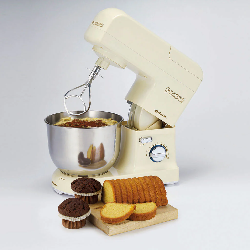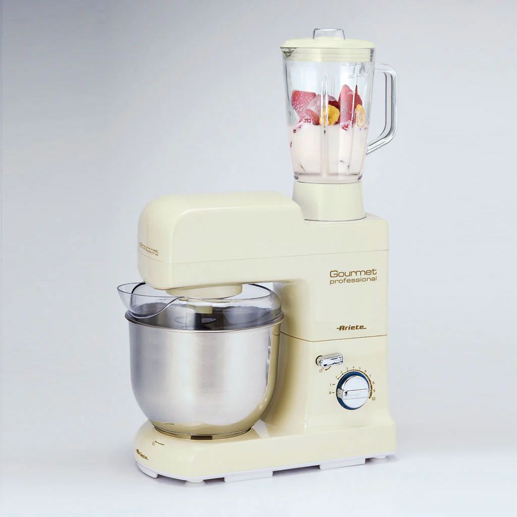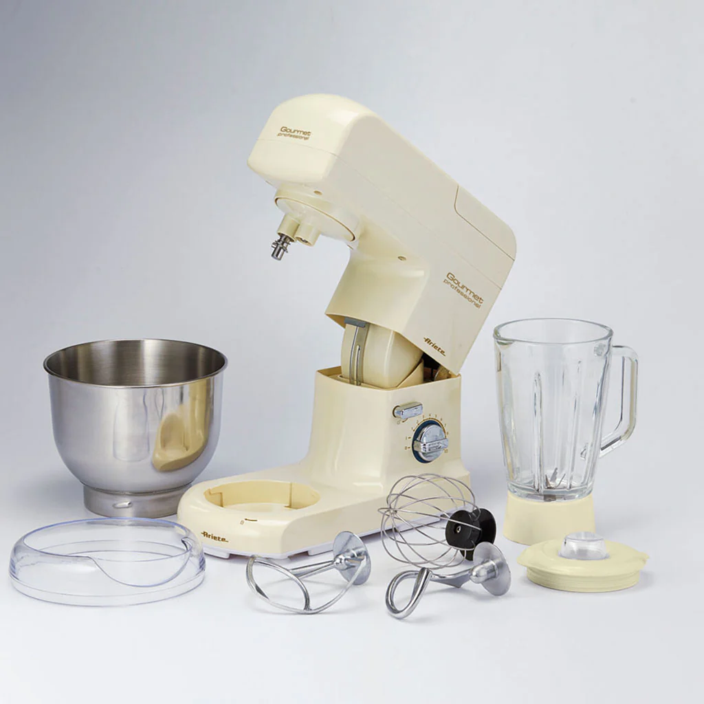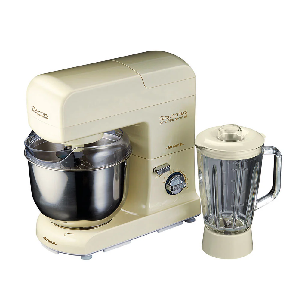 El Robot de cocina 4.2l + Jarra de vidrio 1,5l Pastamatic Gourmet Edición 1950 Ariete es un completo set de robot de cocina con jarra y accesorios, con el que podrás mezclar, batir, amasar o preparar deliciosos batidos de forma fácil, limpia y cómoda. Sus 10 velocidades te permitirán adaptar el nivel a cada preparación. Además, en su jarra de vidrio de 1,5 litros, podrás preparar deliciosos batidos. Con un diseño compacto de aire clásico, es ideal para cualquier cocina.