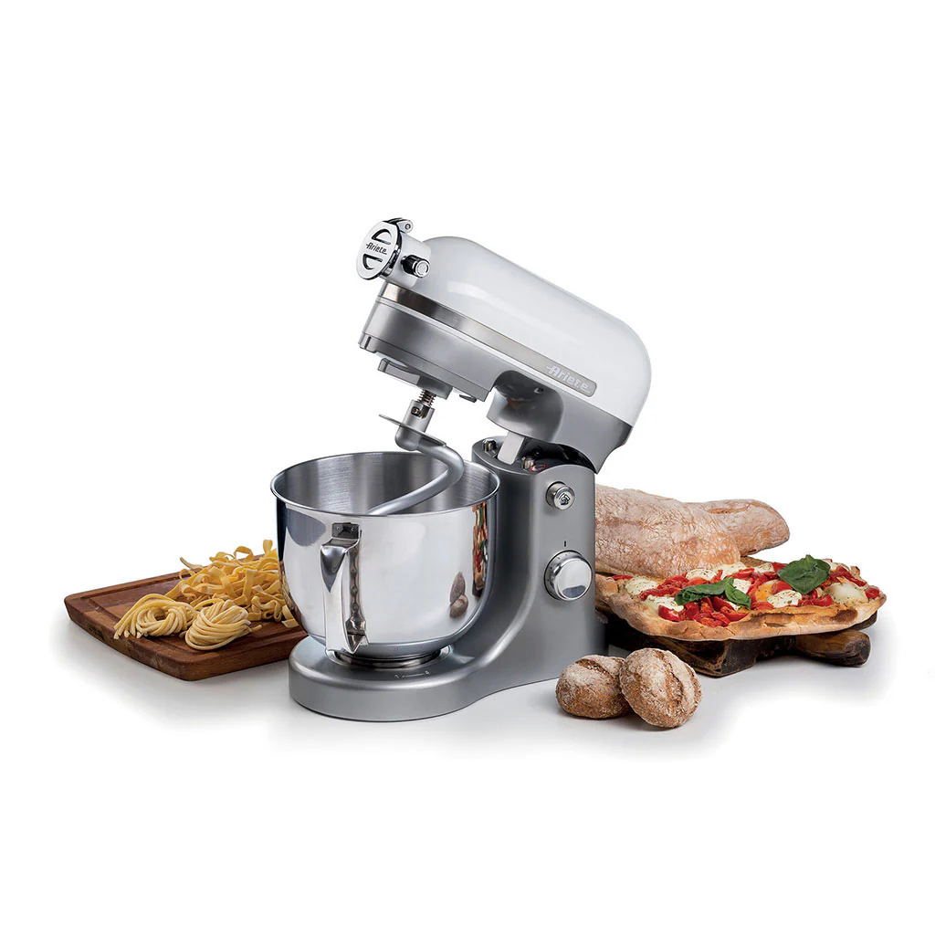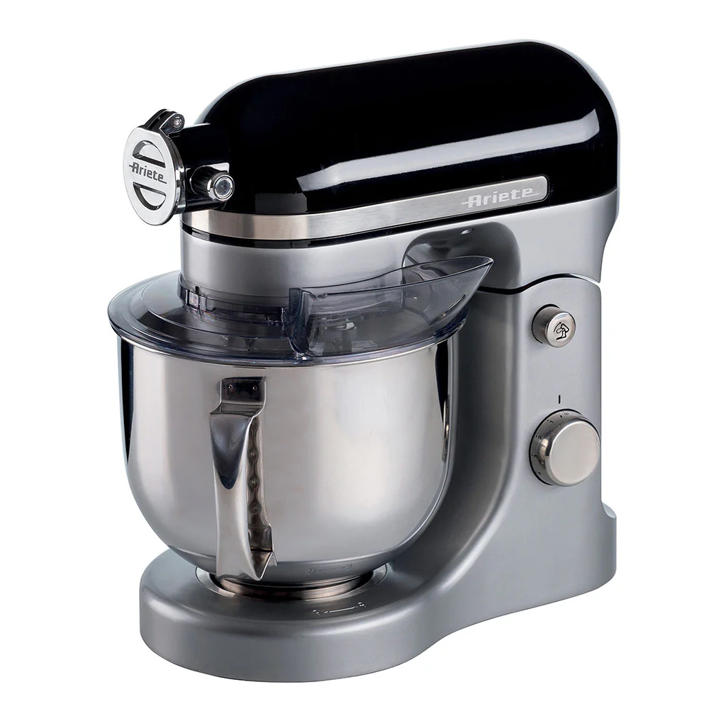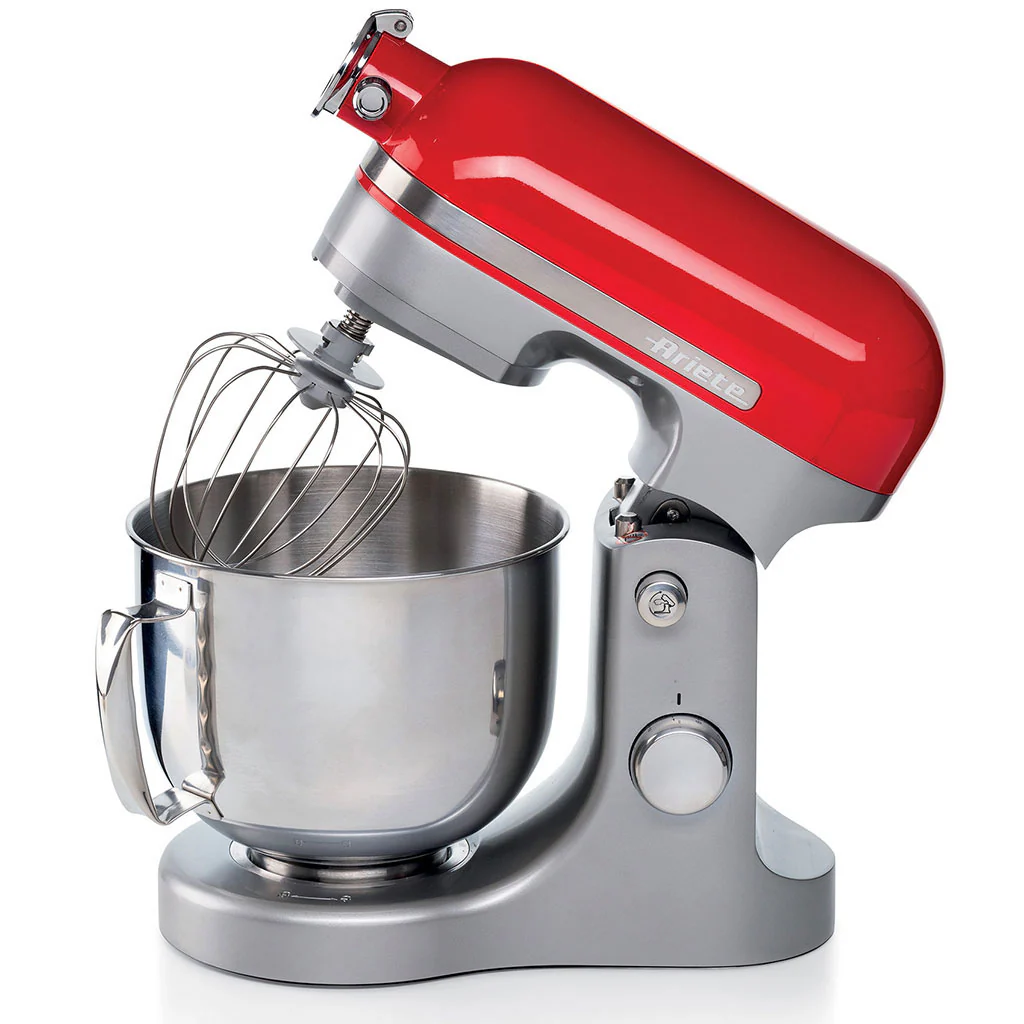 Con el Robot de cocina Moderna 5.5l Ariete podrás mezclar, batir y amasar deliciosas preparaciones de forma fácil, limpia y cómoda. Esta funcional batidora amasadora cuenta con un bol de acero inoxidable con asa y 5,5 litros de capacidad. Sus 11 velocidades te permitirán adaptar el nivel a lo que cada elaboración necesite. Además, incluye 3 batidores de acero inoxidable, espátula para rebañar y tapa antisalpicaduras, para que puedas añadir los ingredientes sin tener que parar el robot. Robusto, duradero y funcional, es perfecto para cualquier cocina.